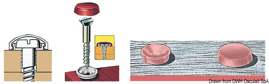 Orli sottovite completi di copritesta a scatto. Sono fabbricati in polipropilene UV stabilizzato e garantiscono, con un costo irrisorio, finiture accurate, impermeabilità e resistenza alla corrosione; da accoppiare con viti a testa svasata piana autofilettanti a legno o a metallo.
