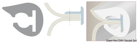 Profilo in PVC flessibile con supporto in PVC semi rigido. Prende facilmente qualsiasi piega. Adatto per scafi con giunzione a labbro, rotoli da 24 m. Ordine minimo 24 m per modello.