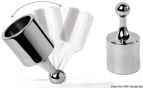 Serie componenti tendalini con accoppiamento tra base e portatubo tramite sfera
