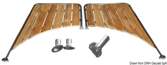 Fabbricate in acciaio inox AISI 316 lucidato a specchio, con parti in legno in vero Iroko. Attacchi terminali snodati per adattarsi a tutte le poppe.