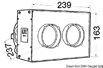 Montaggio nella posizione più indicata. Tramite due uscite a tubo flessibile Ø 75 mm, si raggiungono due bocchette orientabili da montare a paratia. Stesse caratteristiche