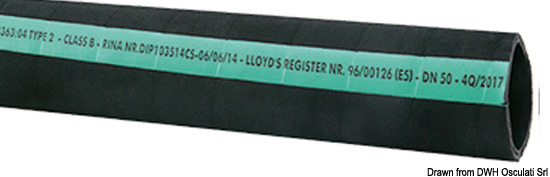 In gomma con omologazione RINA + LLOYD I tubi sono confezionati con un sottostrato di gomma nera liscia, tessuti sintetici ad alta resistenza, spirale in acciaio incorporata. Copertura in gomma nera antifiamma resistente al contatto dei prodotti petroliferi, acqua di mare, agenti atmosferici e all’abrasione.