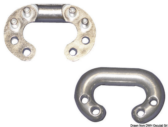 In acciaio inox AISI 316. Alta resistenza dovuta alla struttura con 8 perni di tenuta che consente di raggiungere carichi di lavoro e di rottura equivalenti o superiori a quelli delle relative catene. Misure in mm corrispondenti a quelle delle catene calibrate per argani (contrariamente alle false maglie disponibili sul mercato che sono generalmente in pollici) e quindi scorrono perfettamente nel barbotin evitando pericolosi inceppamenti.
