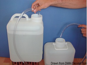 Avendo cura di porre il secondo contenitore ad un livello leggermente più basso del primo sarà sufficiente agitare la pompa nel liquido per far salire lo stesso fino al collo d’oca del tubo, punto in cui attiverà il travaso per “caduta” nel recipiente che lo dovrà accogliere.