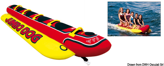 Maxi Hot Dog. Fabbricati in PVC elettrosaldato + nylon cordura + protezione in neoprene. Provvisti di speciale valvola per gonfiaggio/sgonfiaggio rapido.