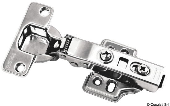 In acciaio inox. Apertura a 105°. Oltre 45° lo sportello resta aperto in qualsiasi posizione si desideri. La chiusura è frenata Soft Close. Complete di dispositivo click-on per sgancio rapido dello sportello.