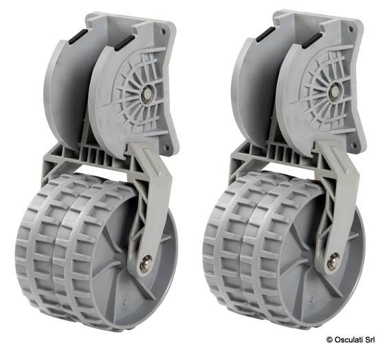 Fabbricate in plastica ad alta resistenza. Sistema di sicurezza per mantenerle in posizione di riposo in navigazione. Universali per qualsiasi tender.