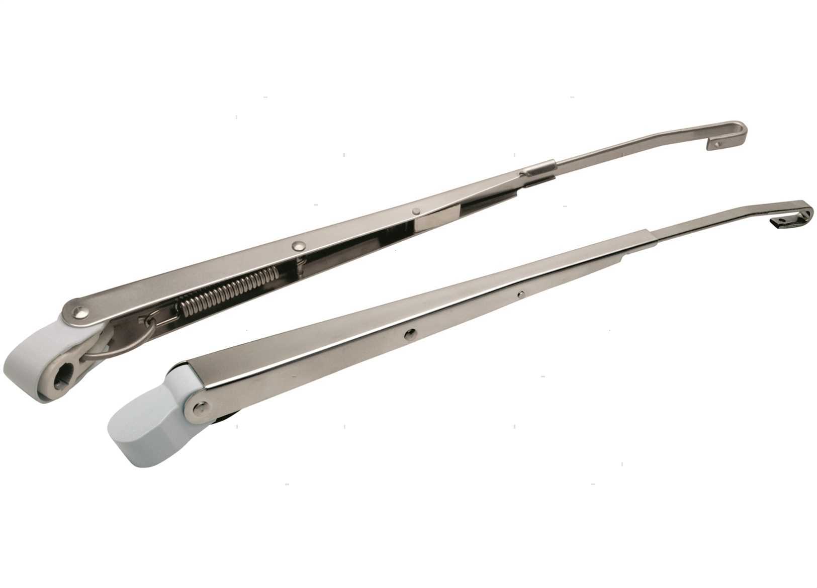 Bracci telescopici in Acciaio Inox con attacco J-Hook. Per tergicristalli W10/W12 e per qualsiasi tergicristallo con perno 13,8 mm. Campo di azione classico tipo S.