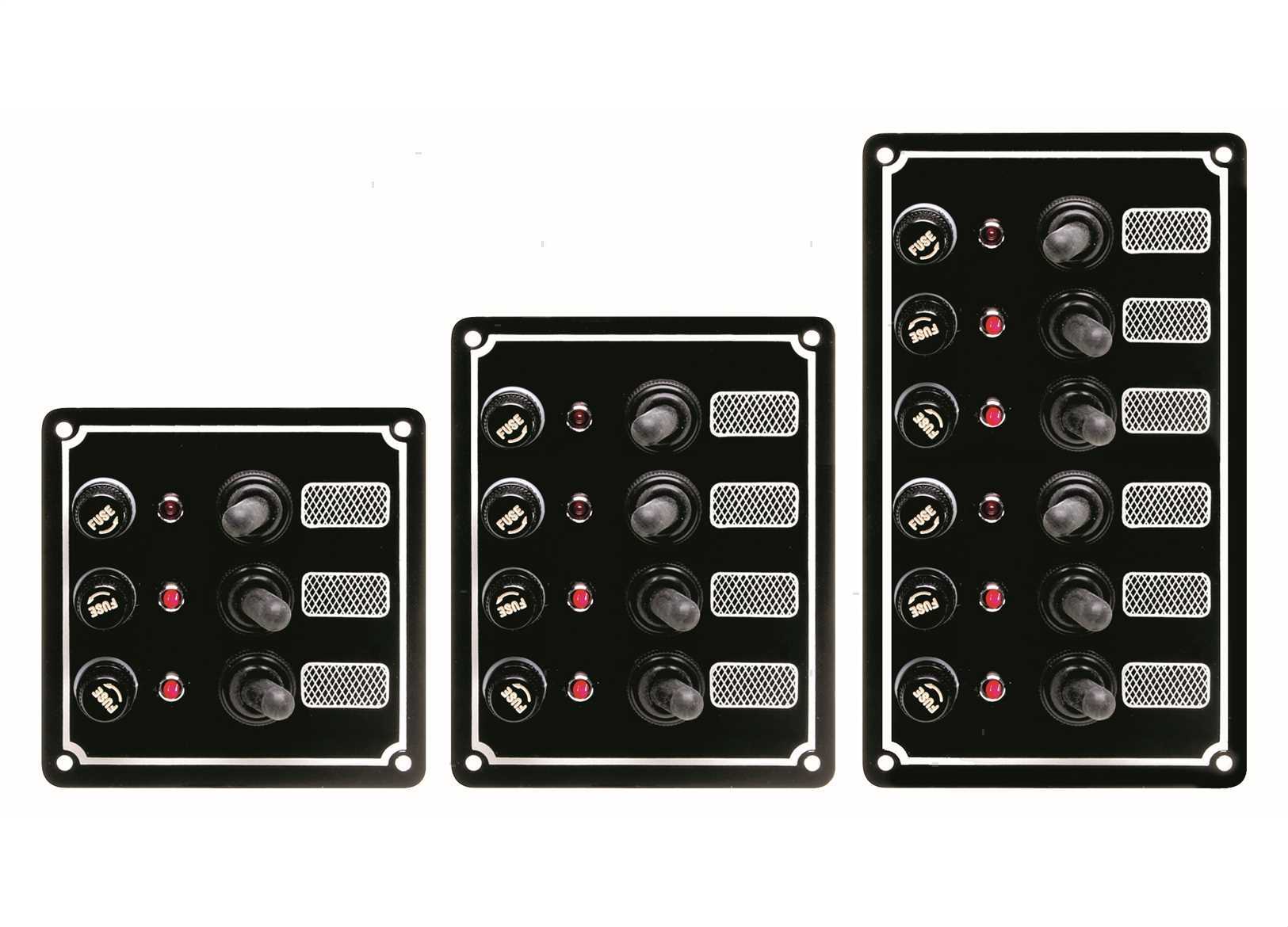 Pannello in Alluminio Anodizzato con interruttori stagni, fusibili e spie LED completo di etichette prestampate.