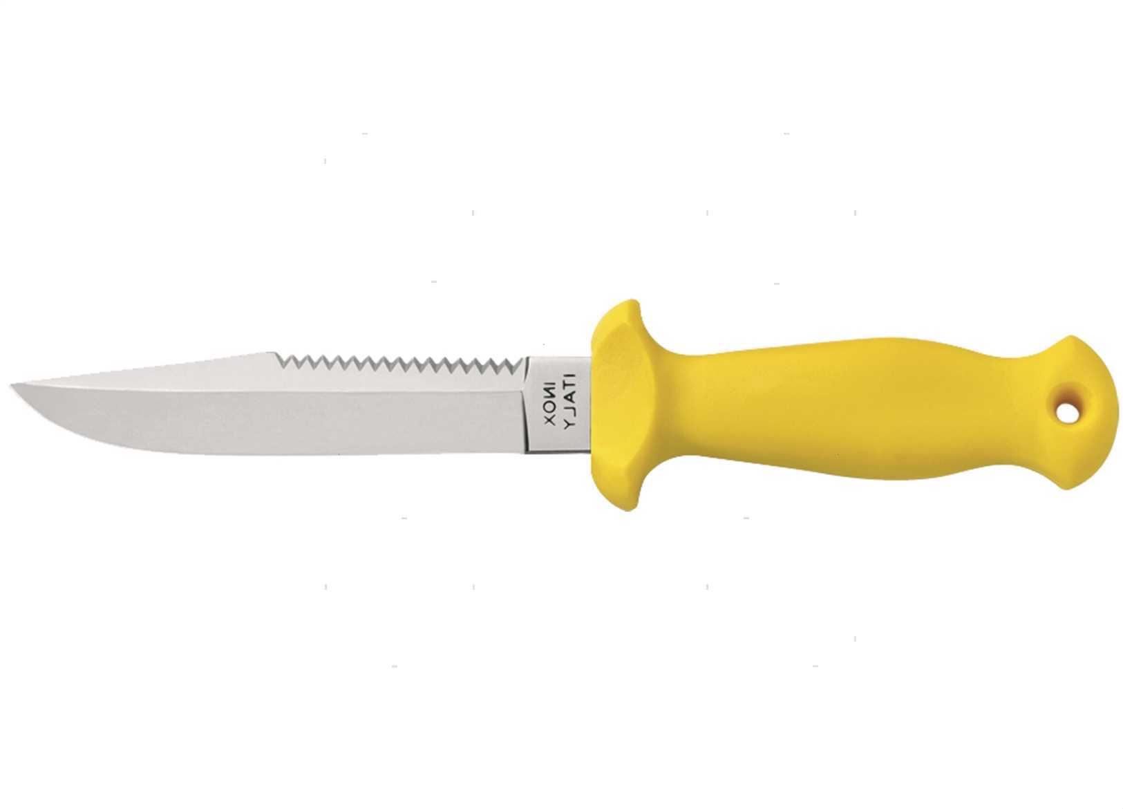 Coltello Sub compatto classico. Completo di fodero e cinghie. Lama in Acciaio Inossidabile W1.4116. Dopo l'uso sciacquare la lama con acqua dolce e ingrassarla.