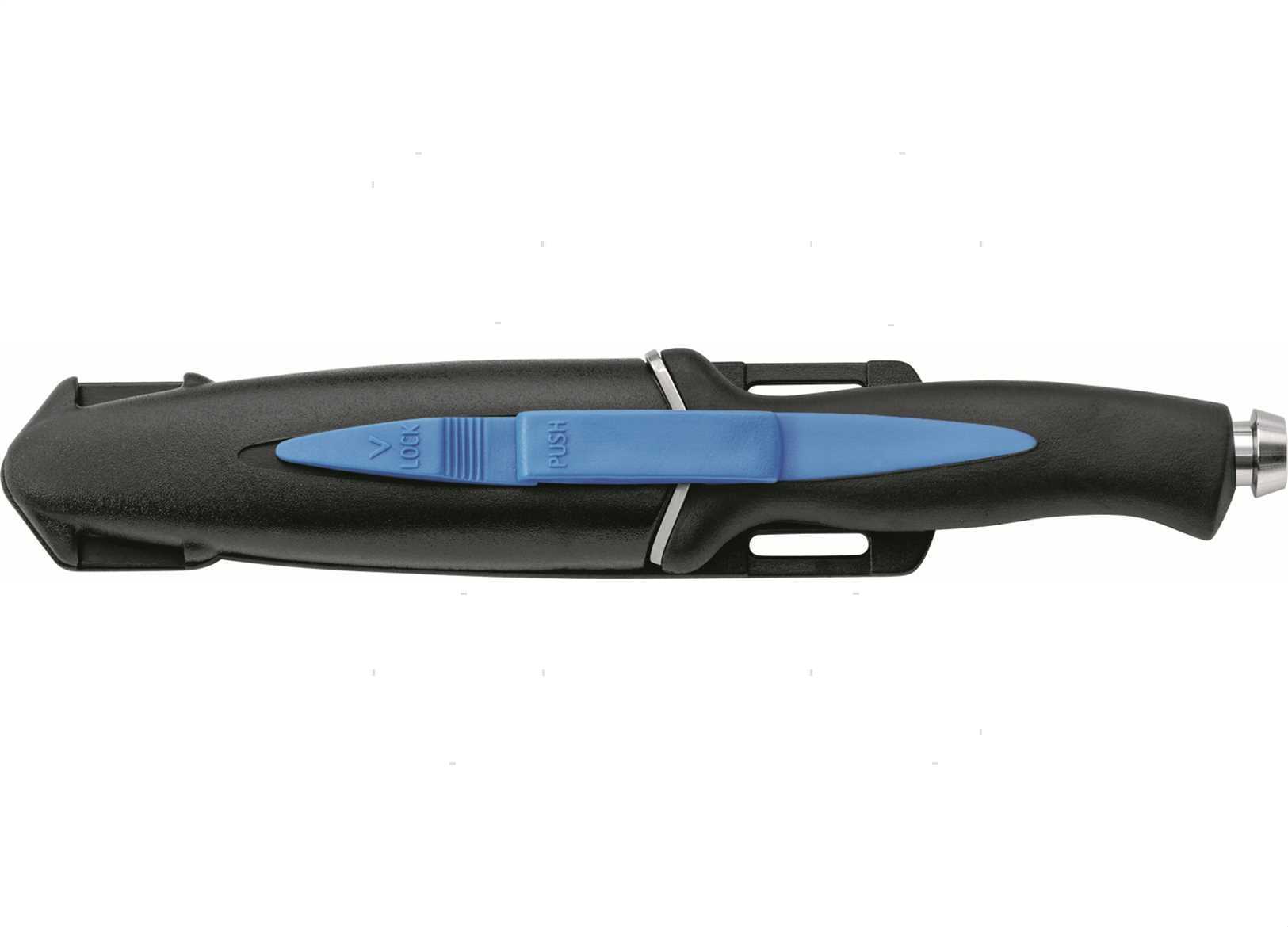 Coltello Sub compatto con martello su manico e tagliaspago. Completo di fodero e cinghie. Lama in Acciaio Inossidabile W1.4116. Dopo l'uso sciacquare la lama con acqua dolce e ingrassarla.