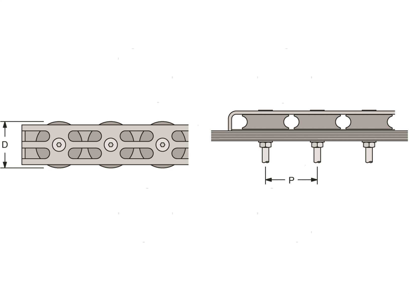 Carenatura in Alluminio anodizzaro nero, pulegge in resina ad alta resistenza su cuscinetti a sfere. Tutti i modelli sono forniti con viti, rondelle e dadi in Acciaio Inox AISI 316.