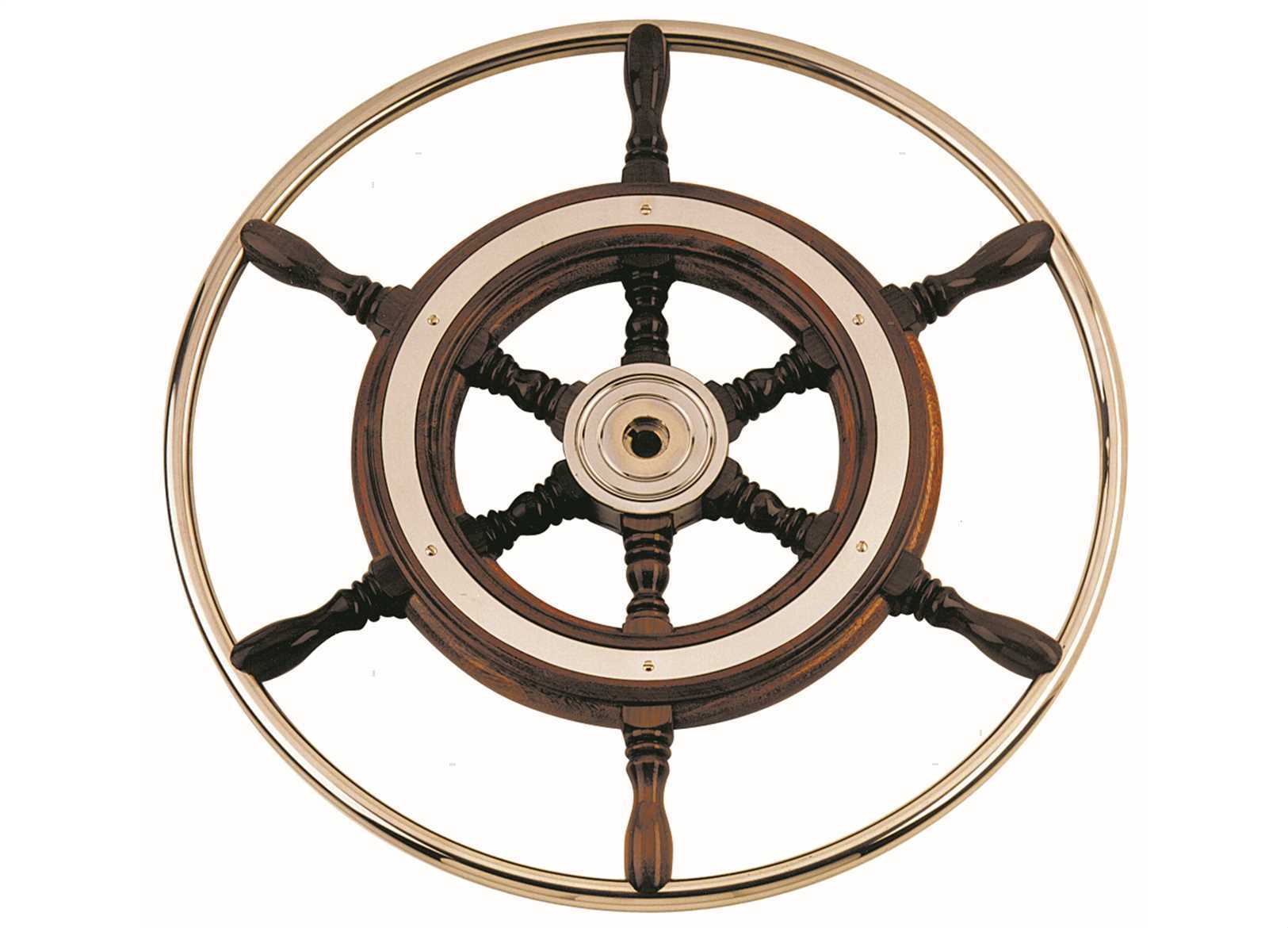Ruote Timone in Mogano con impugnatura in Acciaio Inox e mozzo in Ottone cromato. Mozzo da 19(>17) mm (3/4") con scanalatura larga 5 mm.