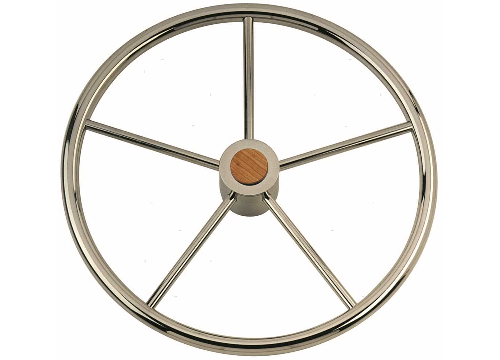 Ruote Timone con telaio e impugnatura in Acciaio Inox. Mozzo da 19(>17) mm (3/4") con scanalatura larga 5 mm.