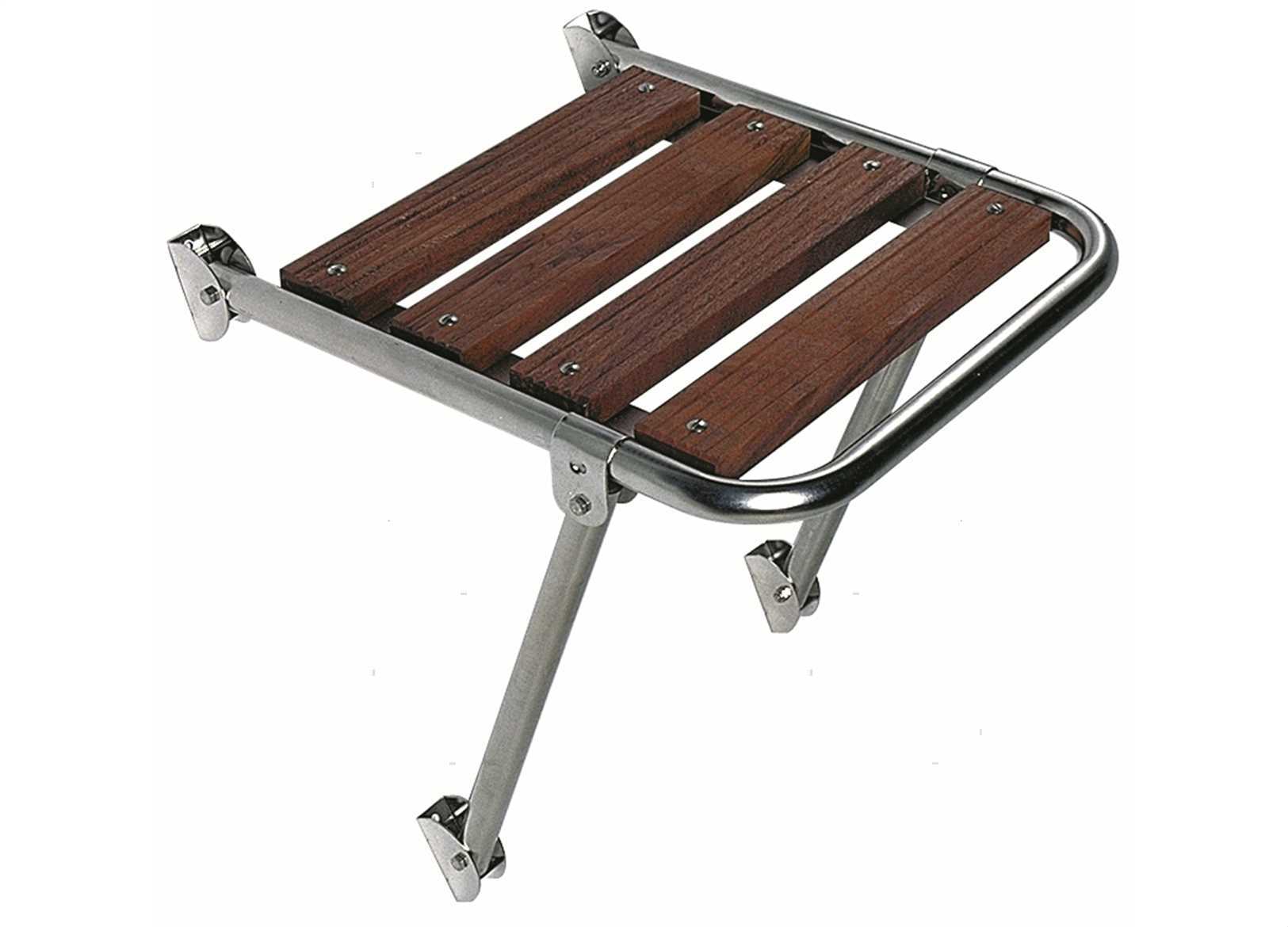 Plancetta di poppa in doghe di legno marino con telaio in Acciaio Inox.