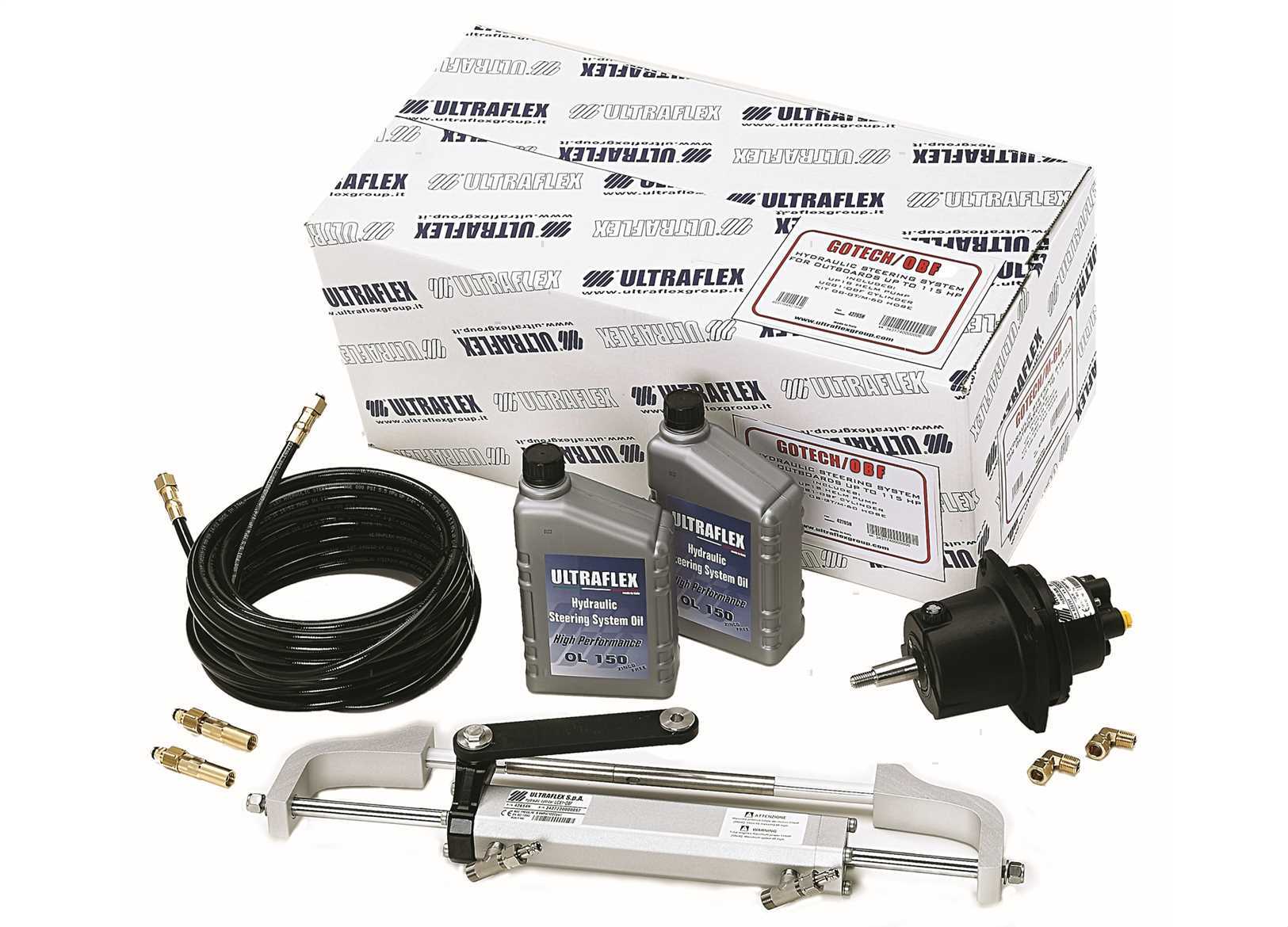 Kit timoneria idraulica Gotech pratico e facile da installare per fuoribordo fino a 115HP totali.?Il Kit comprende:? - Pompa UP18 (Cod MTM 4655001)? - Cilindro UC81 (Cod MTM 4655007)? - 2 Litri olio idraulico? - 6 m Kit tubi