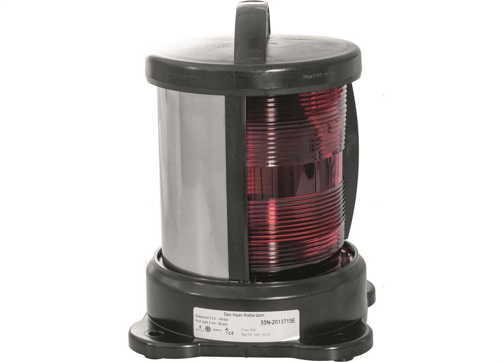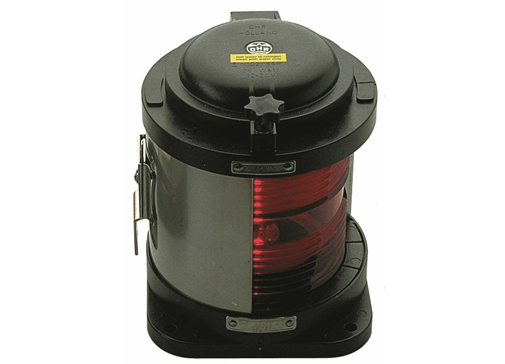 Fanali di navigazione DHR per imbarcazioni fino a 50 metri. Stagni, amagnetici, con corpo in Policarbonato caricato e lenti antiurto Fresnel. Da completare con lampadina BAY15D. Certificati Bureau Veritas MED 2014/90/EU e conformi COLREG/IMO/EN/IEC.