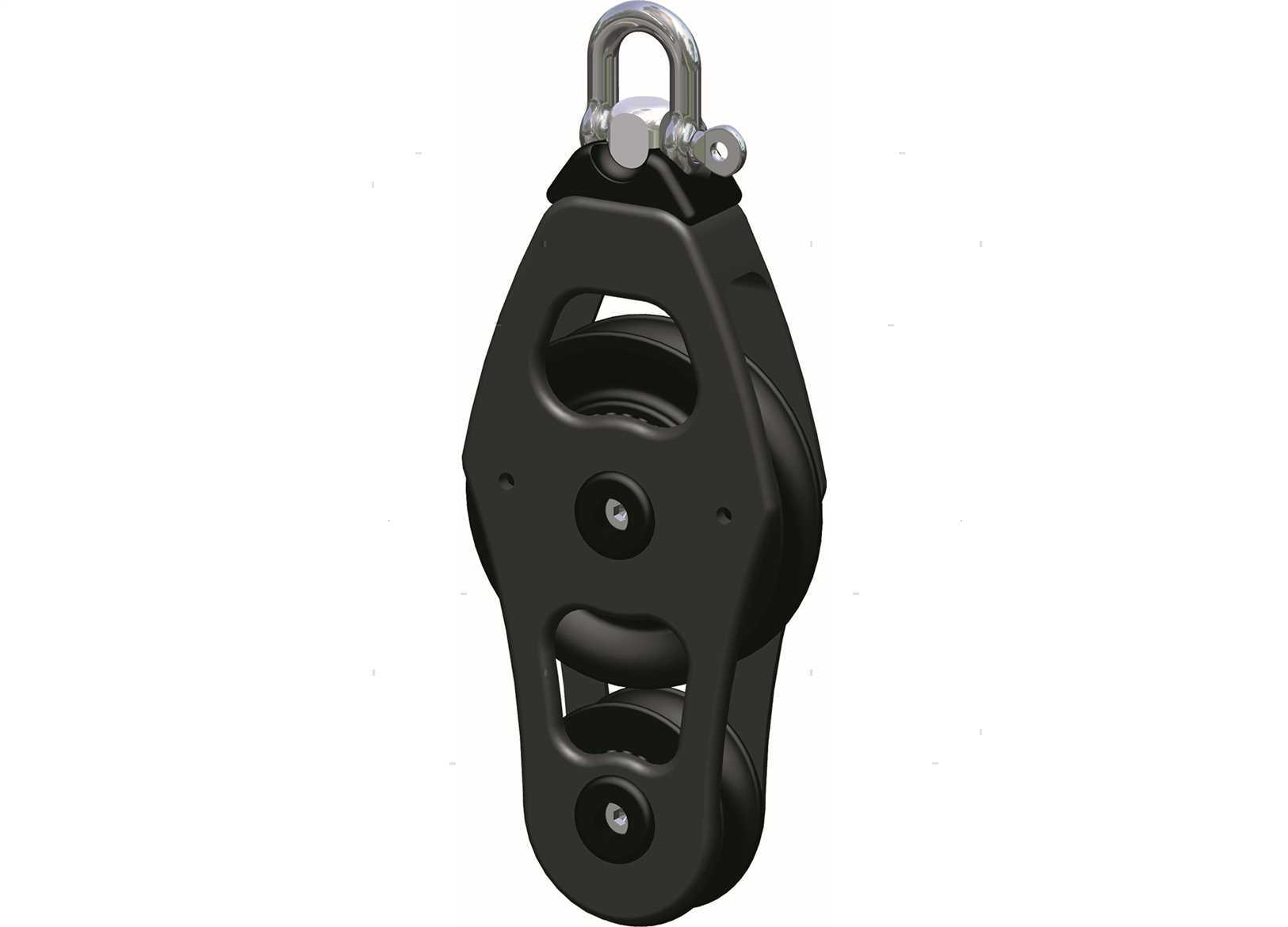 Bozzello molto robusto senza perni e viti con telaio in Alluminio Ossidato nero e teflonato in un unico pezzo. Con pulegge in resina su doppio cuscinetto a sfere che non necessita di lubrificazione. Compreso di testa girevole e grillo in Acciaio Inox ad alta resistenza. L'uso dei migliori materiali garantisce leggerezza e carichi di lavoro elevati.