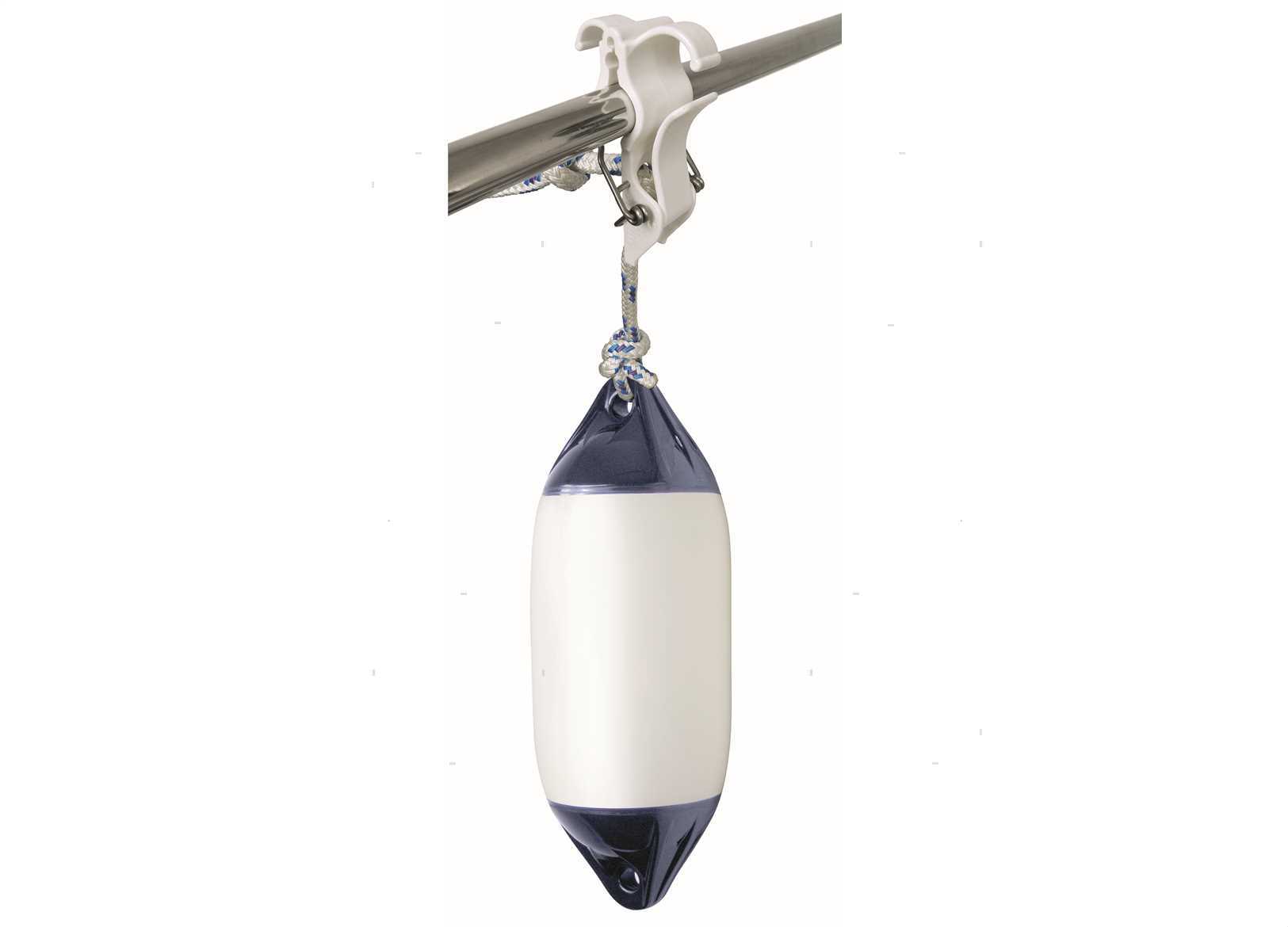 Gancio fissa parabordi in Nylon con molla di sicurezza in Acciaio Inox. Per fissare i parabordi su battagliole da 22 a 25 mm oppure draglie da 6 a 9 mm. Leva GRIP per la regolazione in altezza del parabordo e maniglia passadito per un facile e veloce cambio di posizione.
