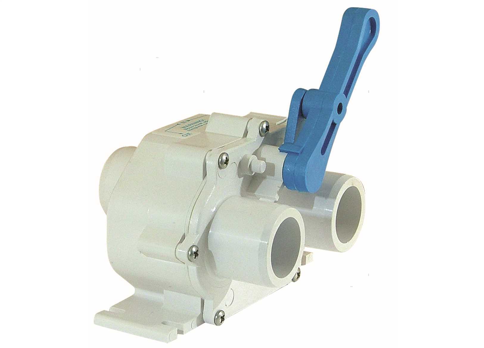 Valvola di scarico a 3 vie con possibilità di comando a distanza con cavo. Permette lo scarico del WC in mare o nel serbatoio acque nere.