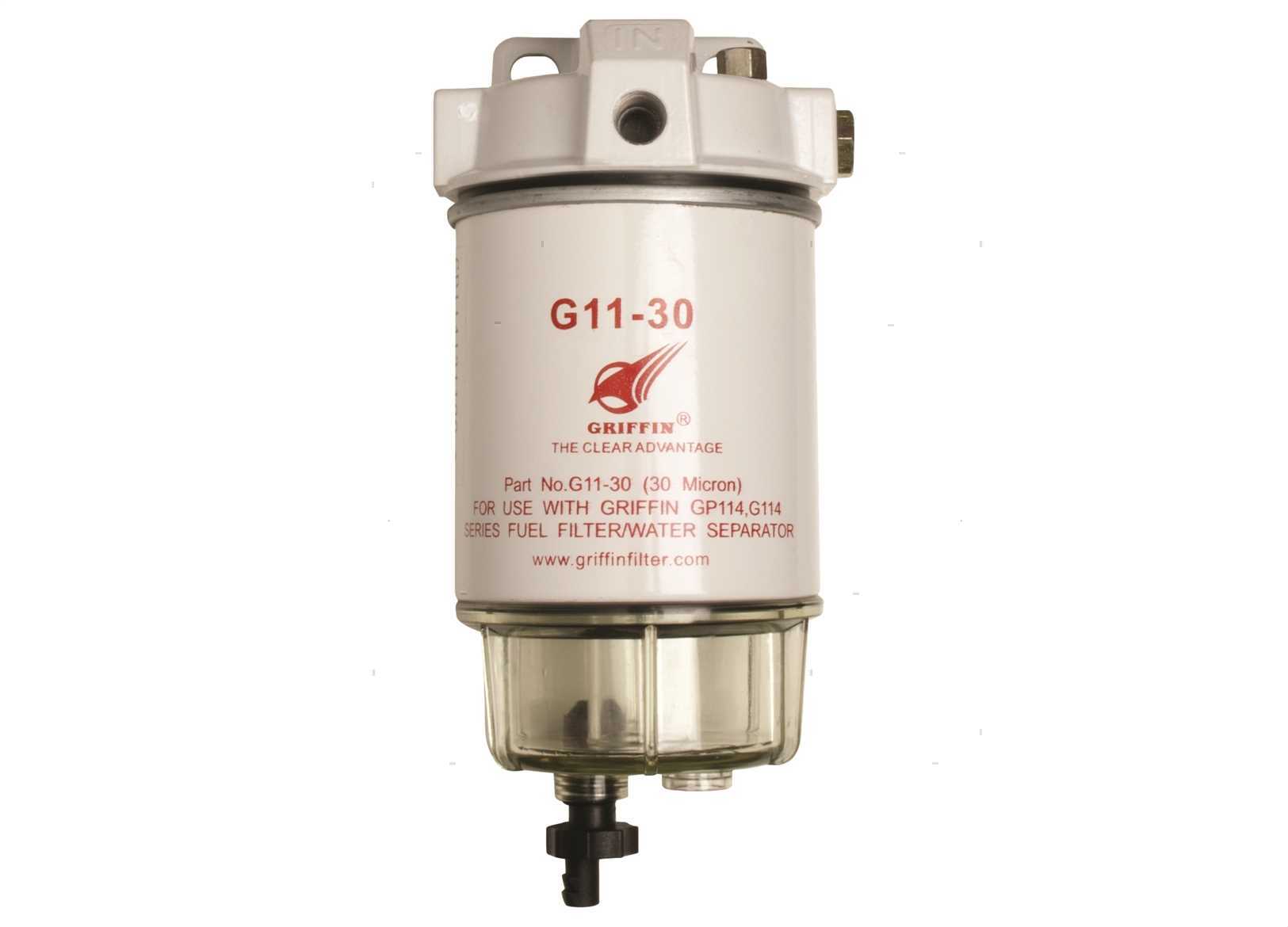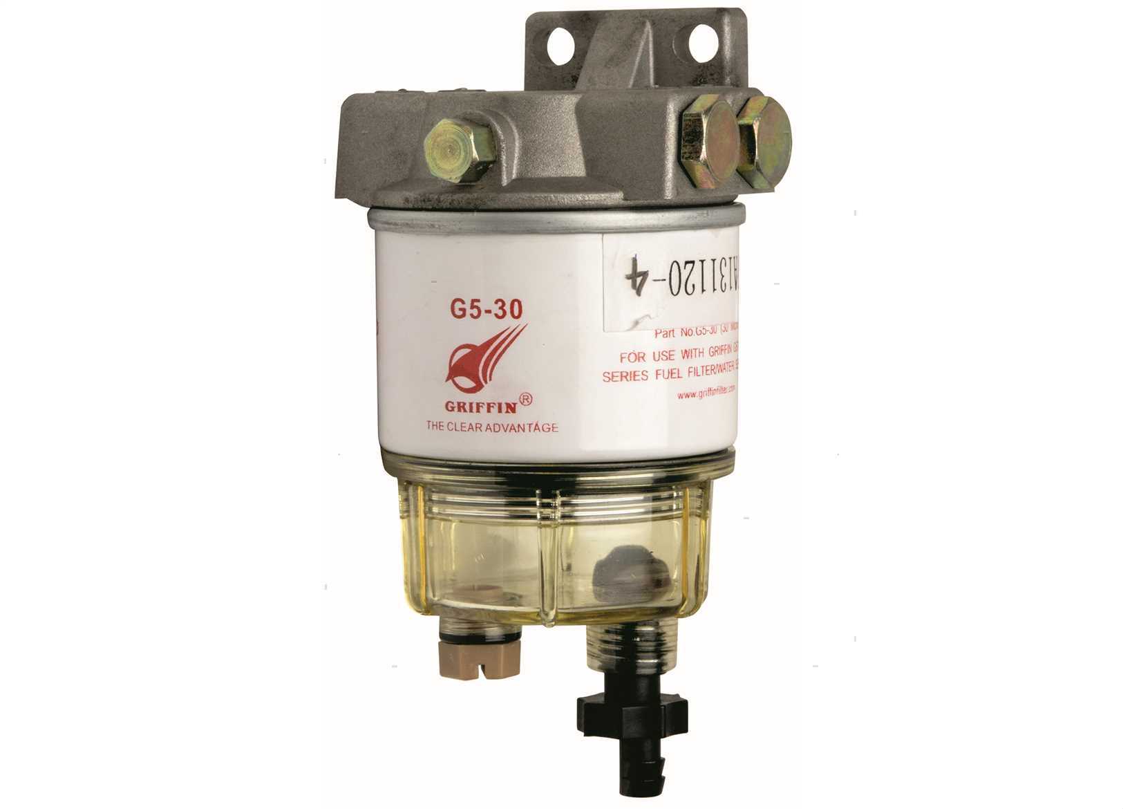 Filtri gasolio Griffin con tecnologia MICROBLOC. Classificati di alta capacità (99.8% di efficienza nel separare l'acqua dal gasolio). Forniti di serie con cartuccia da 30 micron. Possono sostituire i filtri Racor tipo Spin-on.