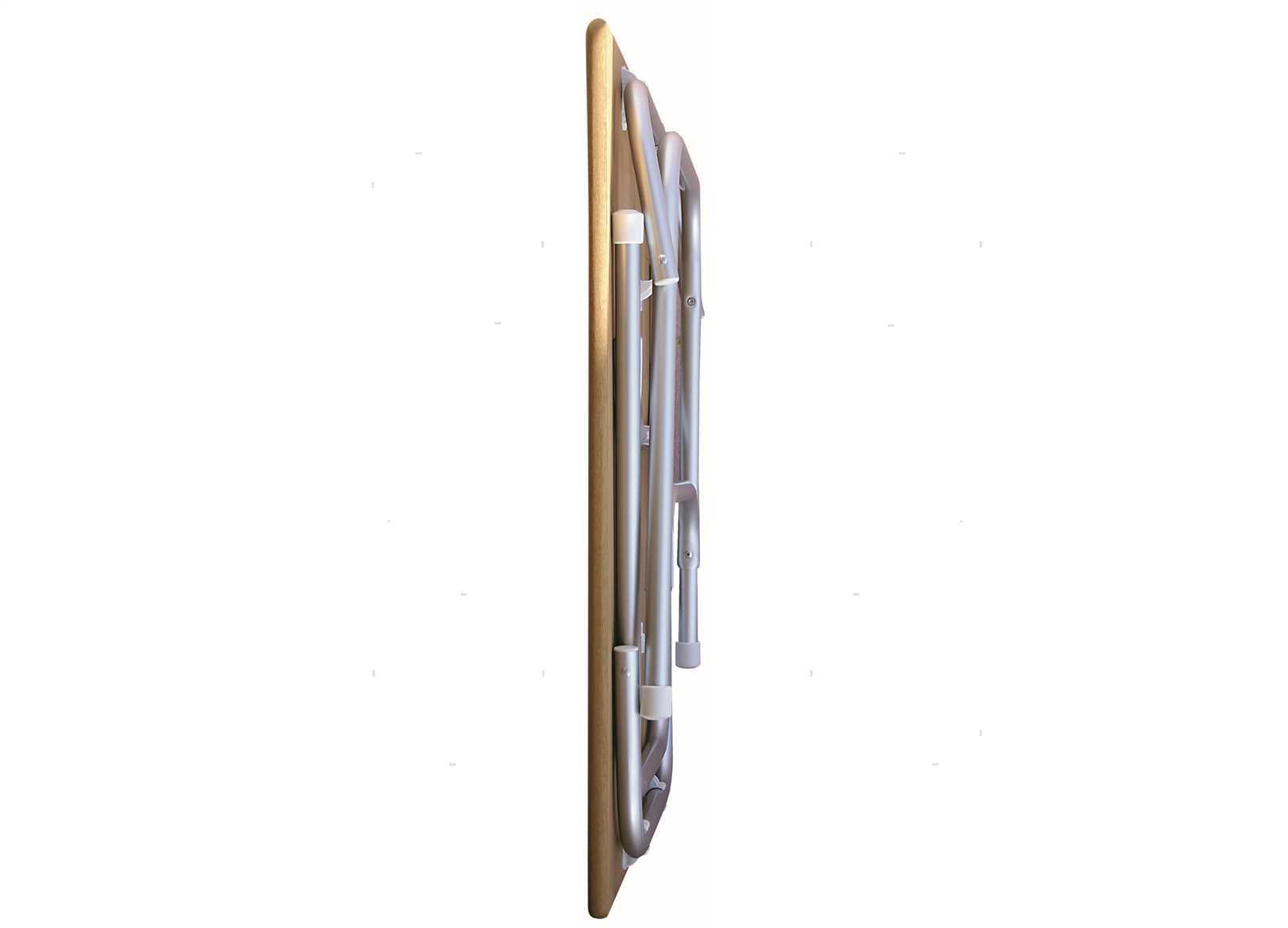 Eleganti tavoli pieghevoli Marathon M400T e M600T. Robusto telaio in Alluminio Anodizzato perfettamente finito. Piano tavolo di qualità superiore finito in Teak resistente a umidità e raggi UV. Angoli in Teak massiccio. Ferramenta e viti in Acciaio Inossidabile. Il tavolo M600T è regolabile in 2 altezze: 56 e 73 cm.