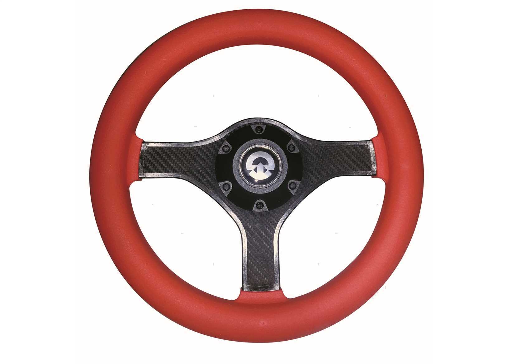 Volanti compatti in materiale termoplastico antiurto con impugnatura morbida effetto pelle. Razze in ABS con effetto Carbonio. Marcati CE in conformità alle norme EN e ABYC.