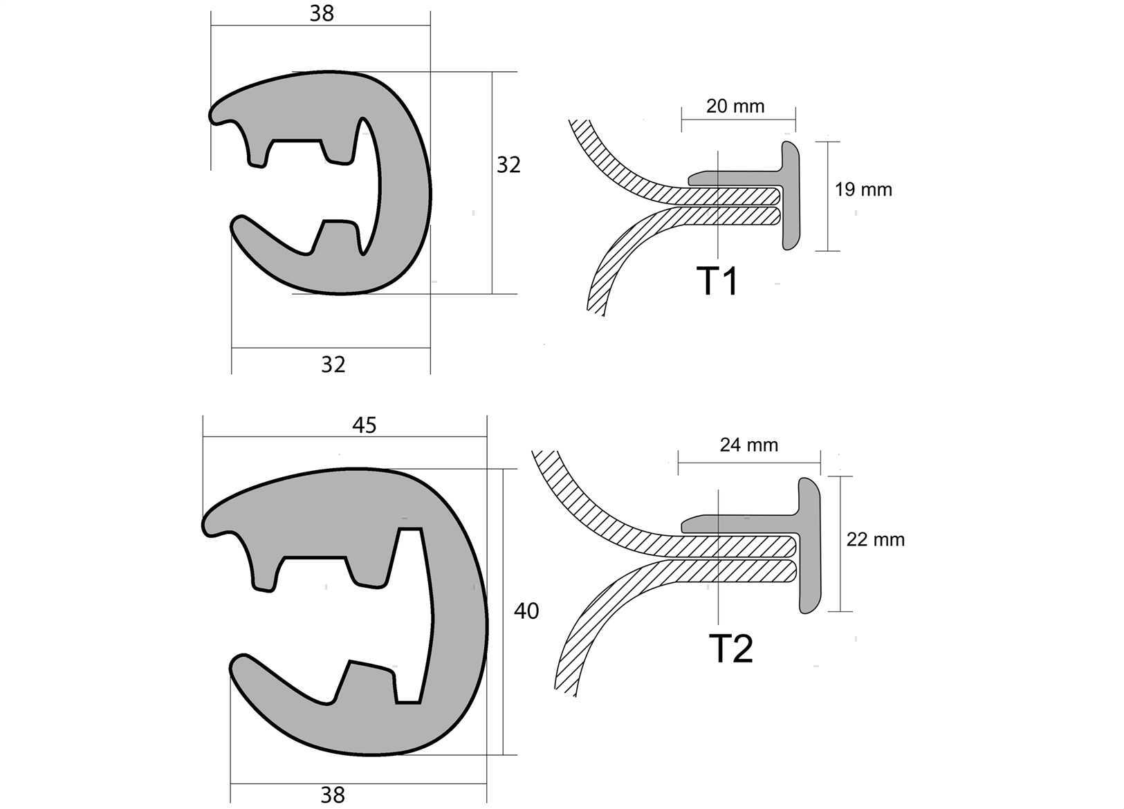 Bottazzo profilo parabordo a T in PVC. Per il montaggio necessita dei supporti T1 o T2.?Il profilo viene venduto in confezioni da 12, 16 e 24 metri. Terminale, giunto di finitura e supporto sono disponibili secondo altezza profilo e colore.