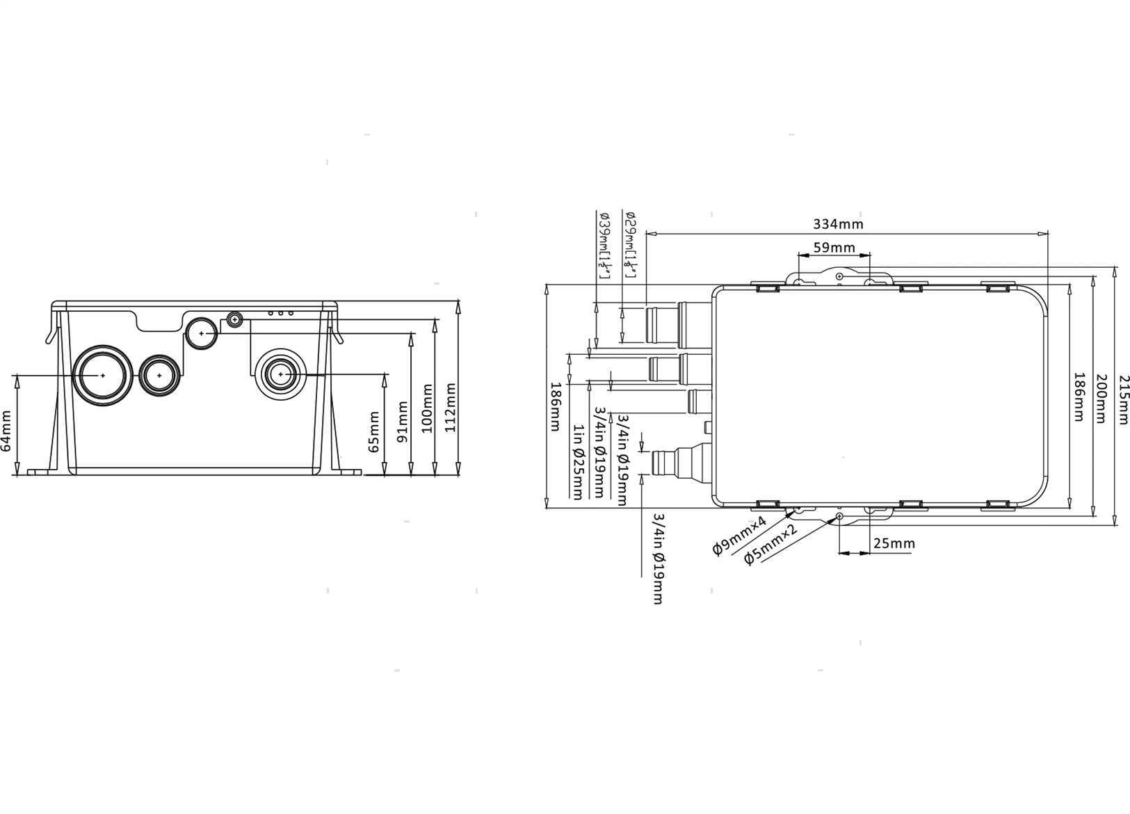 Dim mm: 334 x 215 x H112