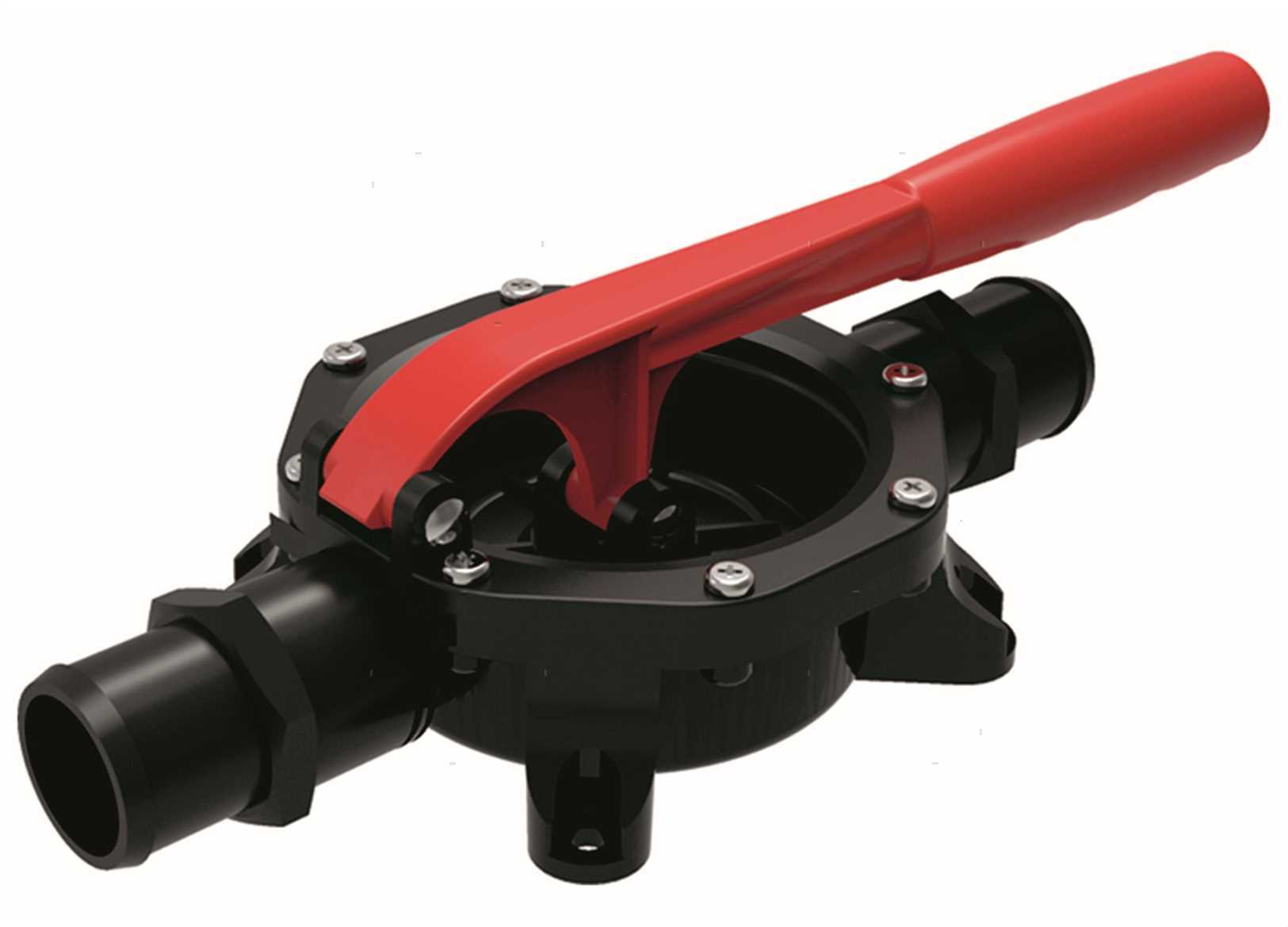Pompa di sentina compatta a membrana SeaFlo. Corpo in leggero e robusto Polipropilene, valvola e membrana in EDPM e viteria Inox. Con testa facilmente smontabile e ruotabile per ottimizzare manutenzione ed efficienza.