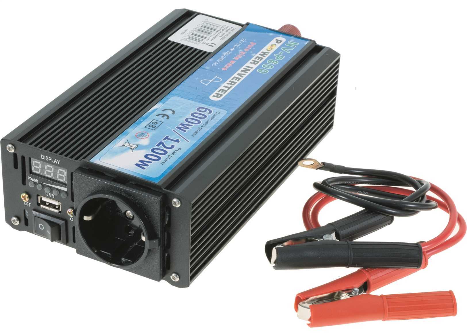 Inverter ES100 Power ad alta efficienza a onda sinusoidale pura per convertire la corrente continua 12/24V delle batterie di bordo in corrente alternata 220V. Efficienza di conversione pari al 90% con distorsione armonica inferiore al 3%. Ideali per alimentare dispositivi elettrici ed elettronici sensibili agli sbalzi di tensione.