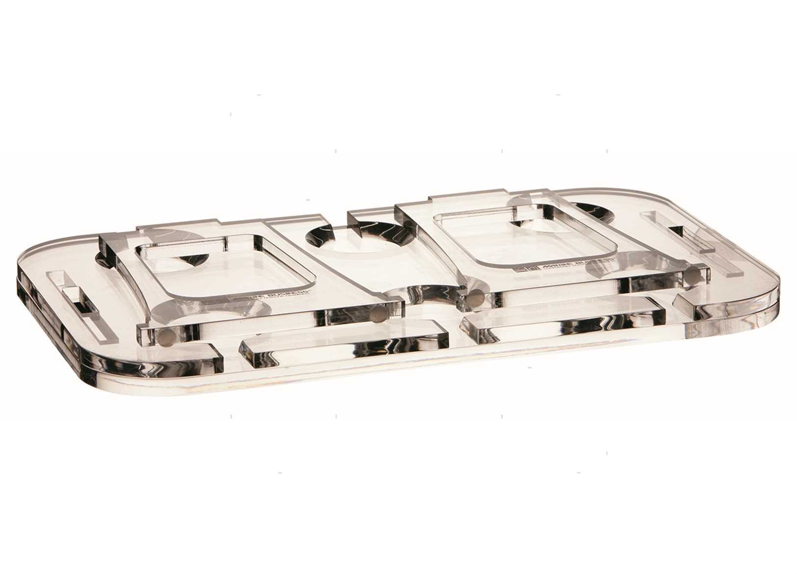 Vassoio porta calici con rastrelliera removibile. In Acrilico garantito 100% per uso alimentare. Lavabile in lavastoviglie, infrangibile e anti-macchia.
