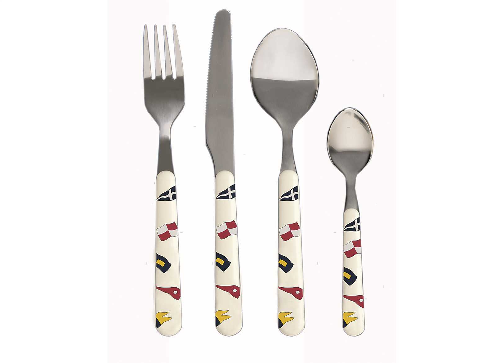 Servizio posate in Acciaio Inox con decoro Regata in confezione da 6 x 4 pezzi.