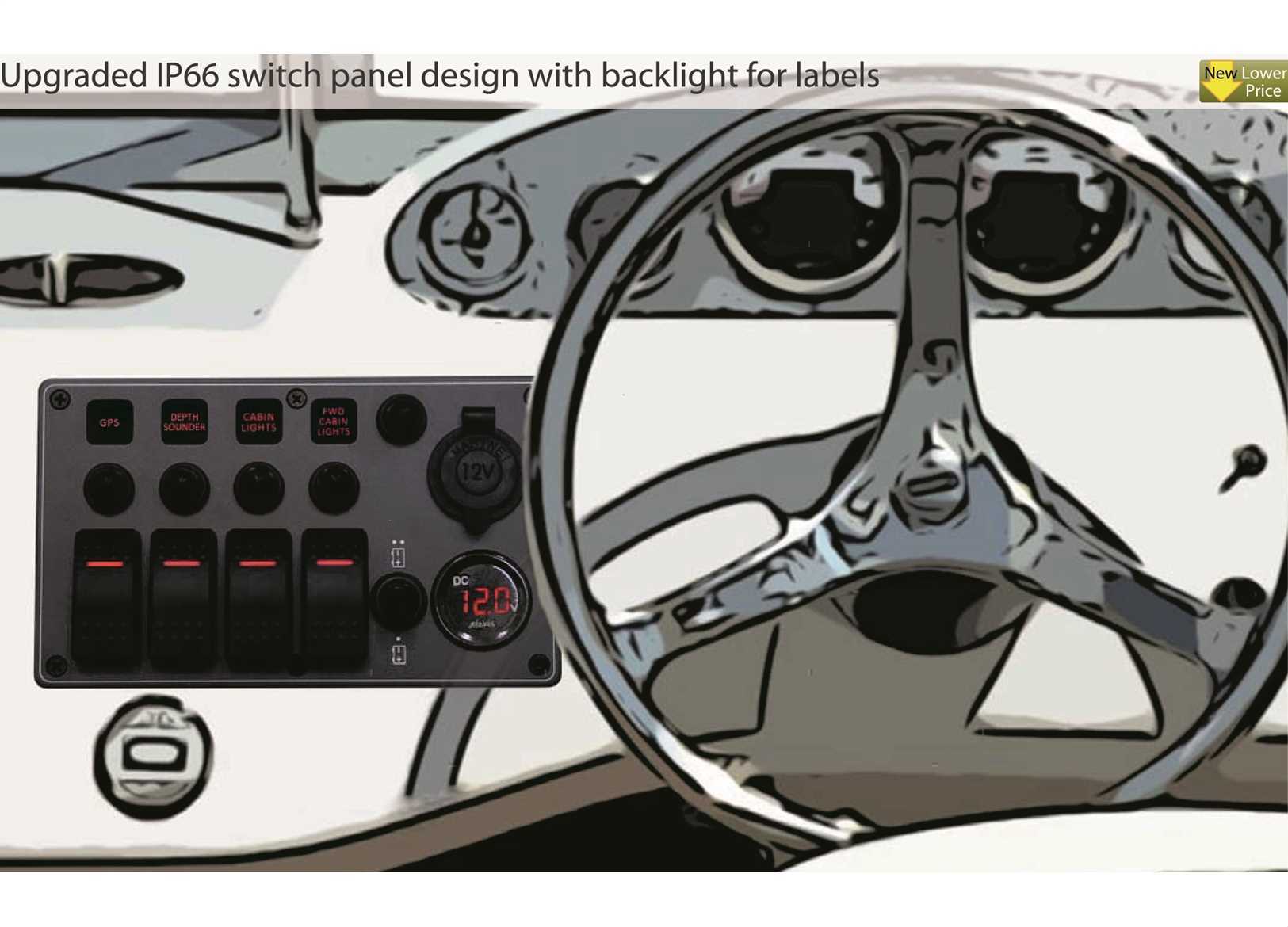 Pannelli 12/24V di qualità superiore in Alluminio compatti e impermeabili IP66. Precablati, con interruttori impermeabili dotati di spie LED rosse e valvole automatiche reinseribili con cappuccio di protezione. Il primo interruttore è (ON)-OFF per segnalazione acustica. Compresi di 30 etichette prestampate da applicare negli alloggi retroilluminati LED. Montaggio verticale oppure orizzontale.