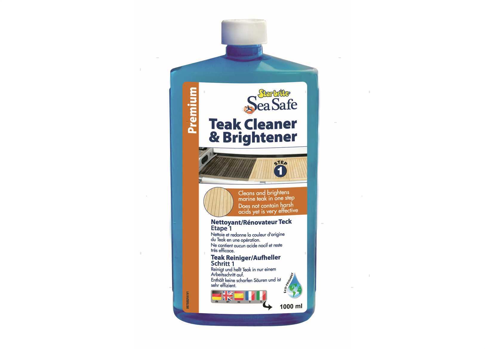 Starbrite Sea Safe Teak Cleaner & Brightener è un detergente eccezionale (100% ecologico) per pulire a fondo e schiarire in un solo passaggio il Teak e altri legni pregiati prima dell'oliatura.