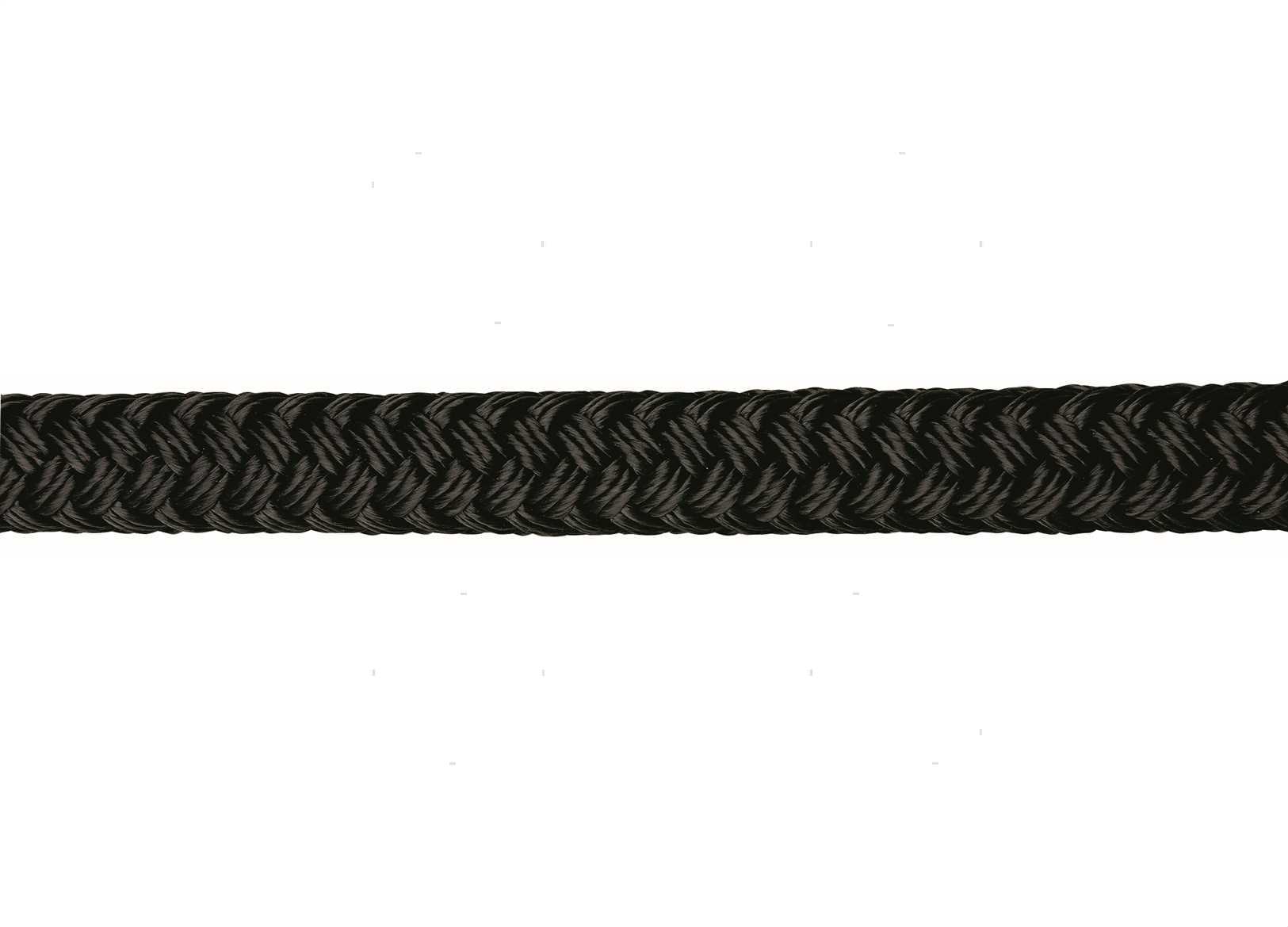 Treccia da ormeggio pronta con gassa impiombata e rifinita a mano. Fornita semplice oppure con rivestimento in cuoio trattato marino e cuciture in Dyneema. Robusta, morbida, lavorazione a 16 fusi in Poliestere alta tenacità con guaina trattata resistente all'abrasione. Non galleggia. daN= carico di rottura in Kg