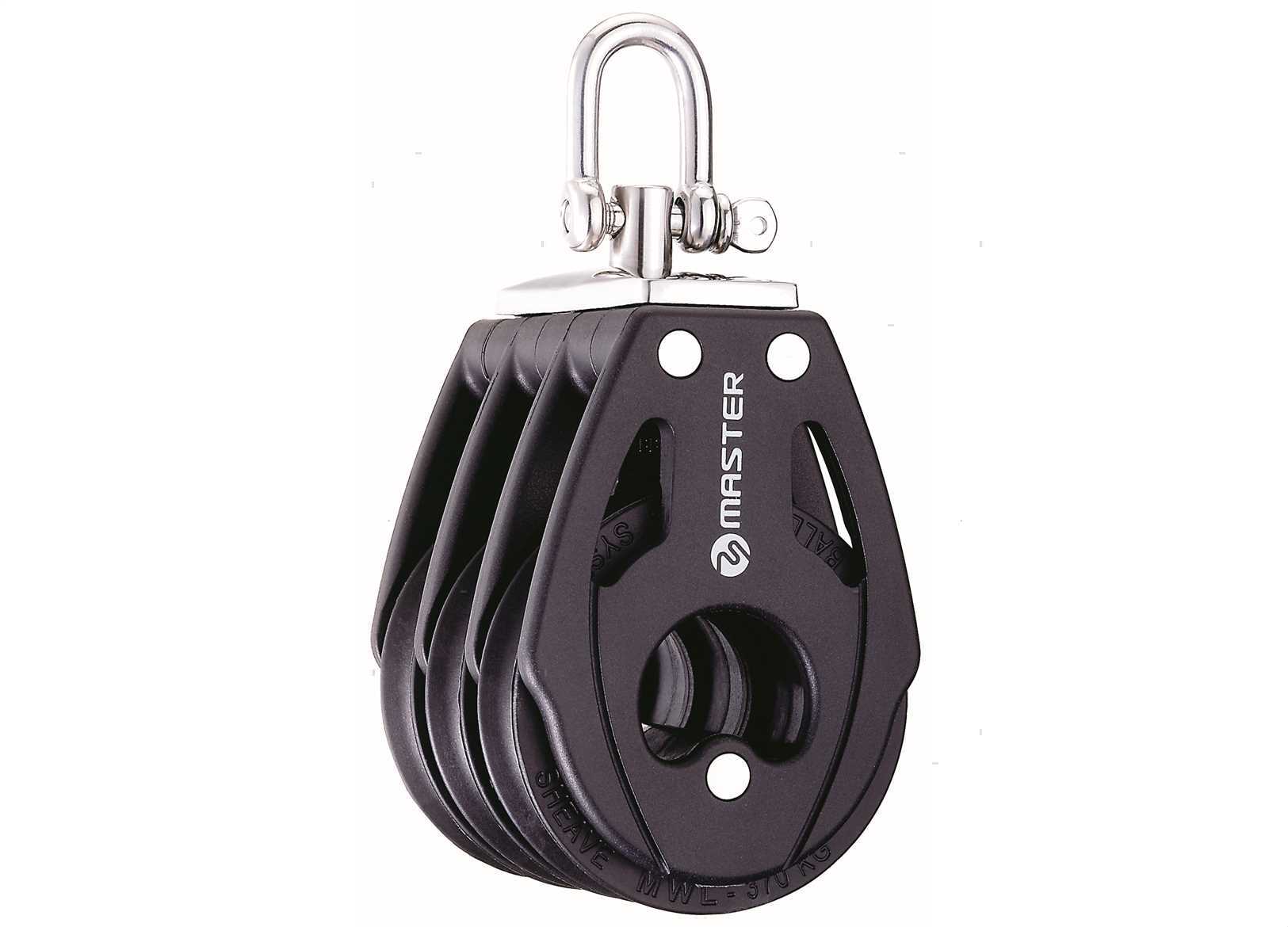 Bozzelli Master su sfere con puleggia da 29 mm. Cassa in materiale composito ultra leggero rinforzato con fibra e UV resistente con grillo girevole. ?Sfere ad alto scorrimento in Delrin stabilizzato UV.