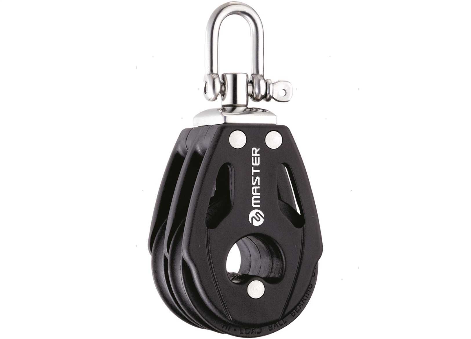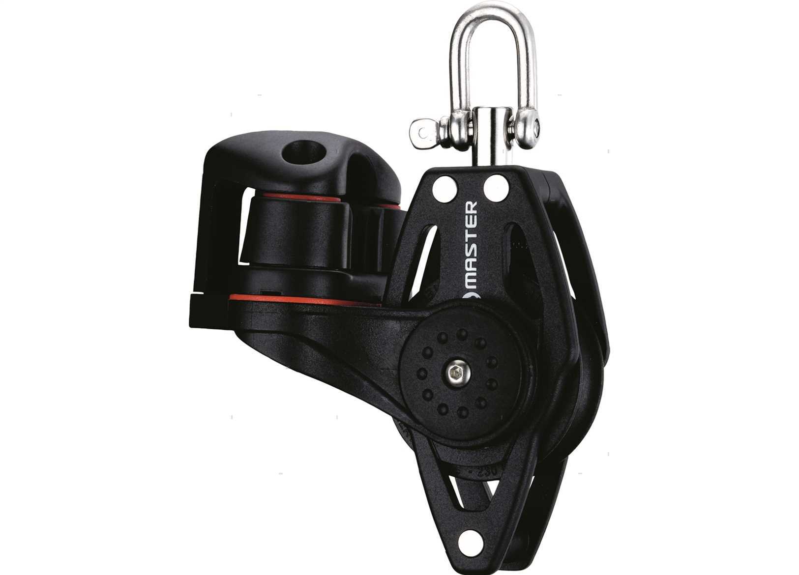 Bozzelli Master su sfere con puleggia da 75 mm. Cassa in materiale composito ultra leggero rinforzato con fibra e UV resistente. Il grillo girevole può essere bloccato in due posizioni grazie alla leva di blocco. Sfere ad alto scorrimento in Delrin stabilizzato UV. ?NB. Il carico di lavoro/rottura dei bozzelli con strozza scotte sono relativi allo strozza scotte.