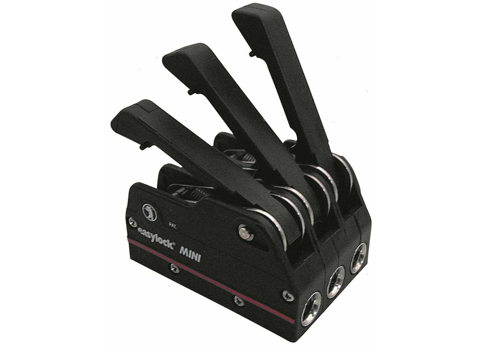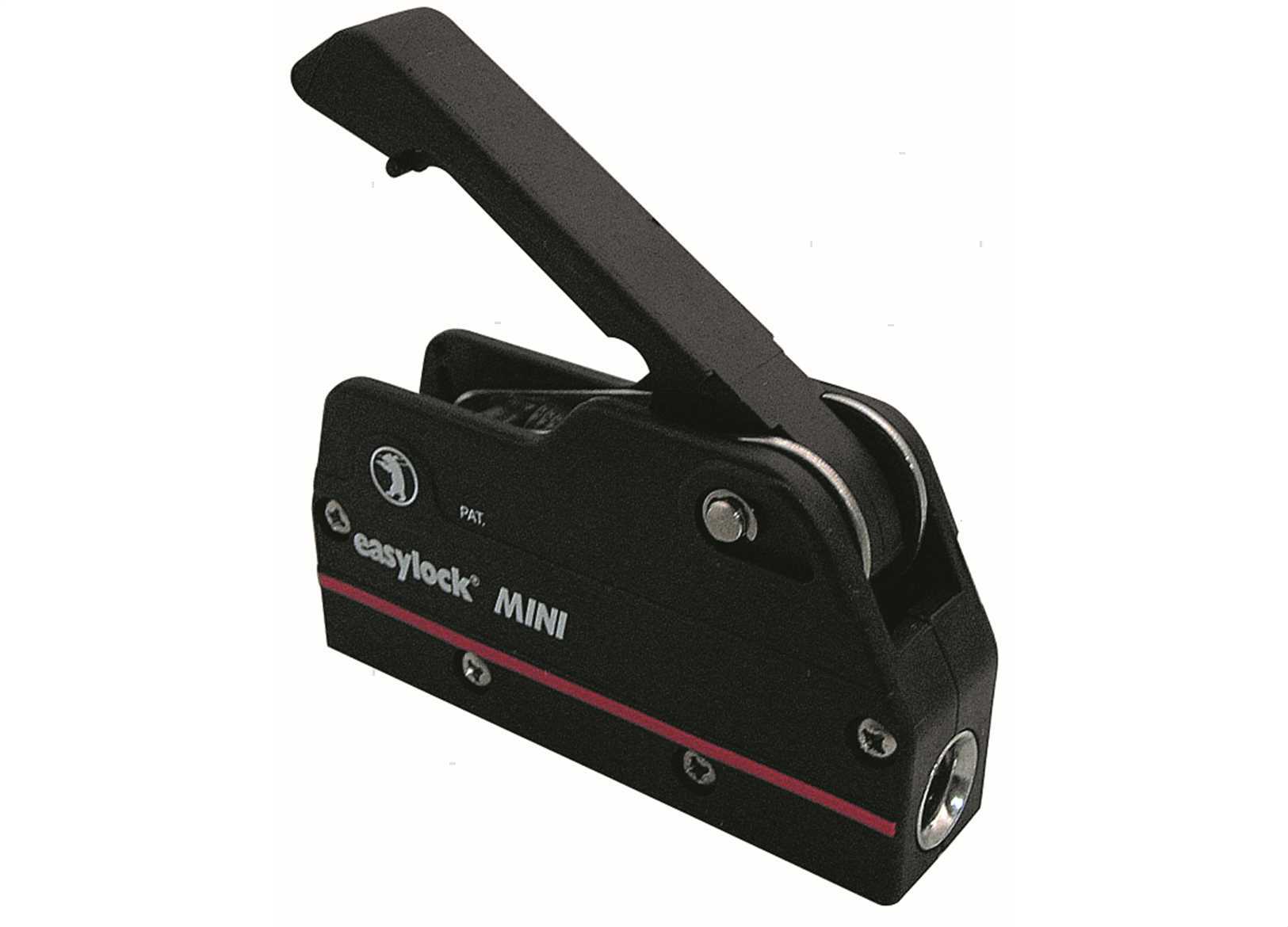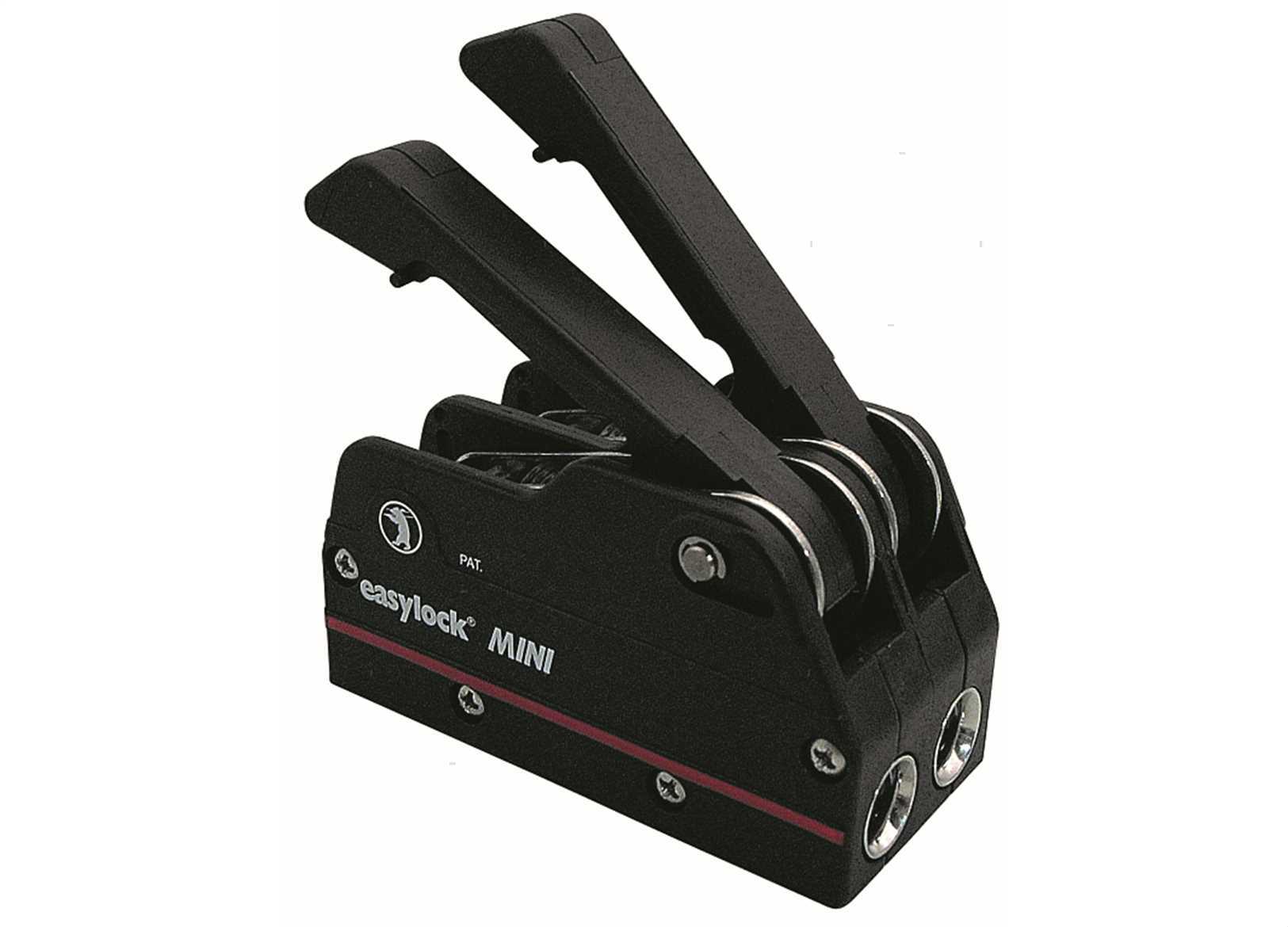 Stopper Easylock Mini permette di cazzare e lascare la scotta sotto carico. ?Guance in Alluminio Anodizzato. ?L 115 mm. Carico di lavoro 450 Kg.