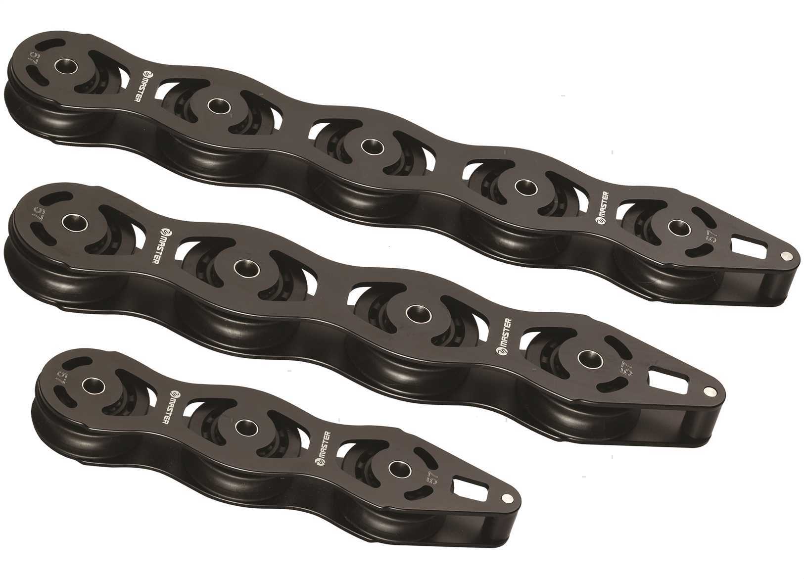Deck organizers Master con pulegge da 57 mm e cassa in Alluminio anodizzaro nero. Cuscinetti su sfere ad alto scorrimento in Delrin stabilizzato UV. Interasse pulegge 78,5 mm.