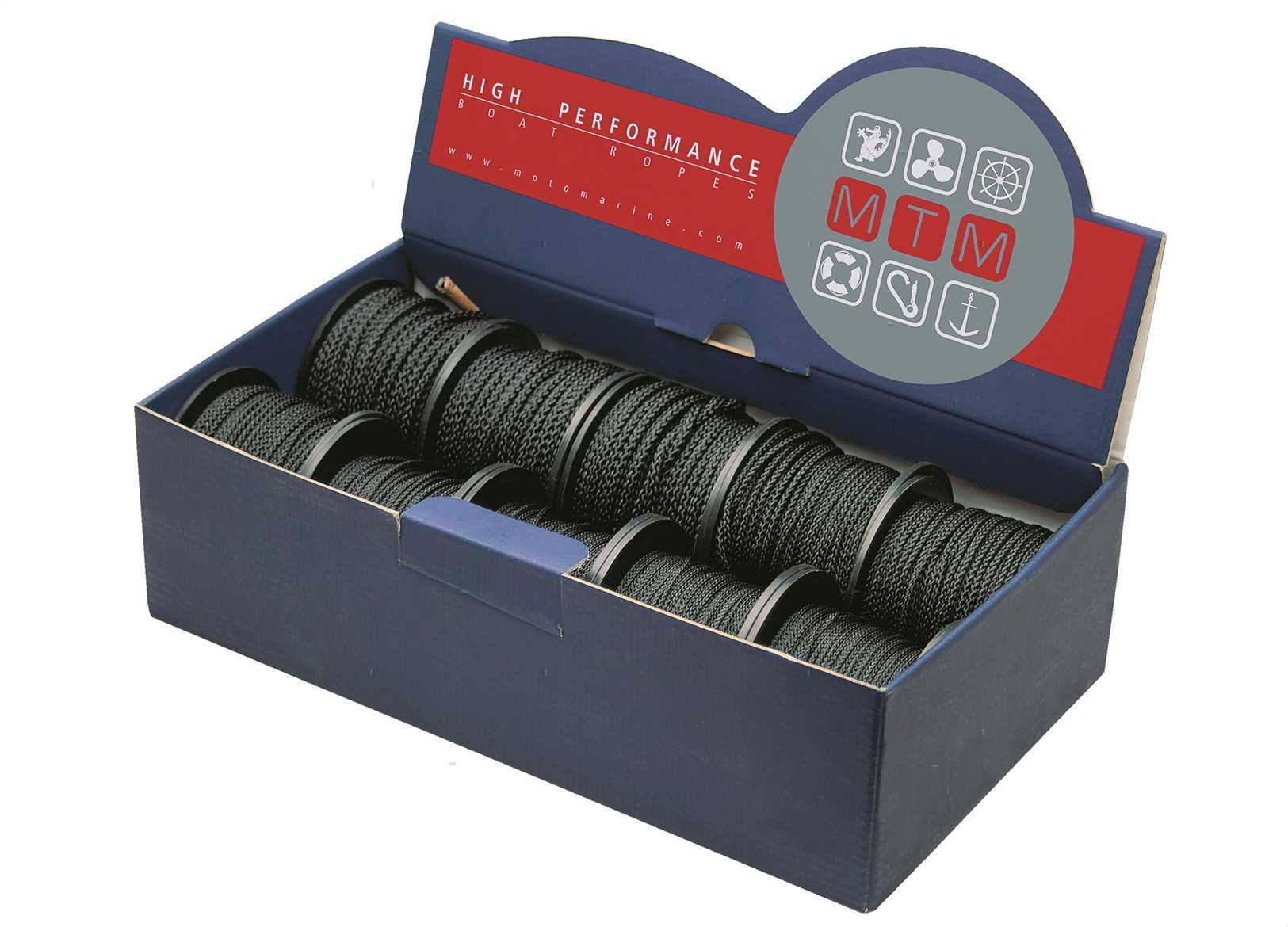 Bobinette di treccina in Poliestere Nero. Ideali per sagole, legature e mille altri usi a bordo.