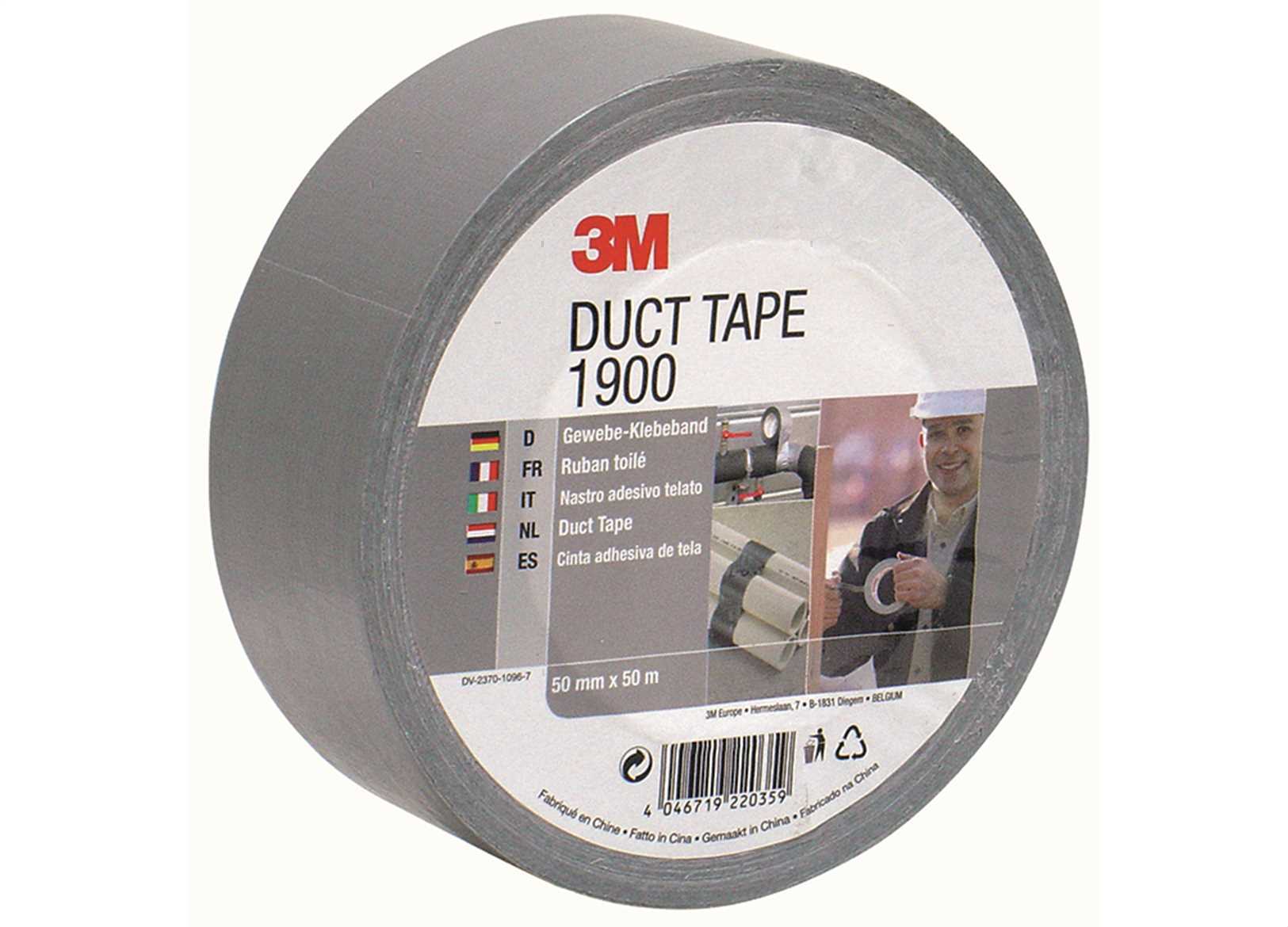 Nastro multiuso 3M 1900 Duct Tape con supporto telato in polietilene e adesivo in gomma resina. Spessore 0,170 mm.