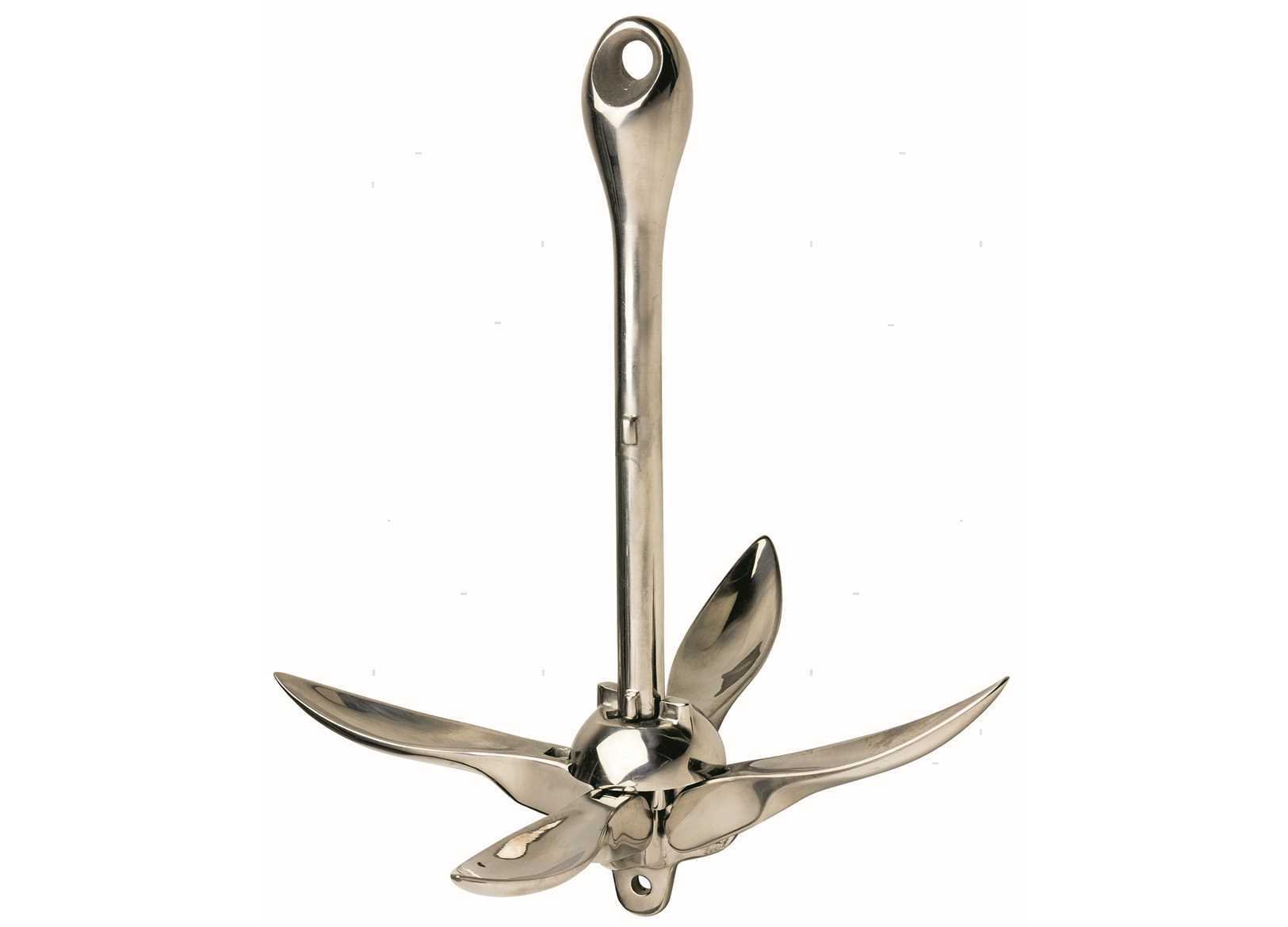 Ancora ad ombrello chiudibile in Acciaio Inox.?Per fondi: scoglio - sassi - sabbia.?Molto usata come seconda ancora.
