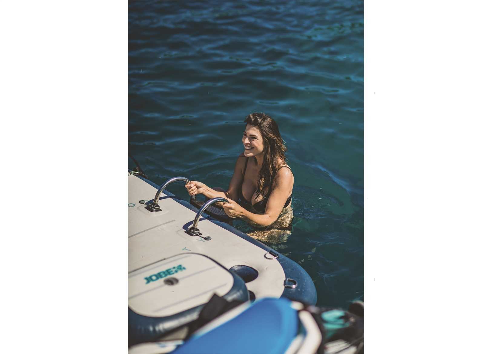Piattaforma Infinity Jobe ?costruita con tecnologia Heat Bonded di Nylon intrecciato e PVC con nastri di rinforzo sui bordi, con pagliolo antiscivolo in EVA. Facilmente assicurabile alla propria imbarcazione grazie ai numerosi d-rings, permette di estendere lo spazio a disposizione per numerose attivitą. Presenta inoltre, la possibilitą di esser collegata con pił piattaforme o con l'Infinity Pool (3020308) in maniera rapida e sicura. Dotata di una durevole scaletta in Acciaio Inox per la risalita, una pompa a batteria (11,6 psi) e una custodia in PVC.