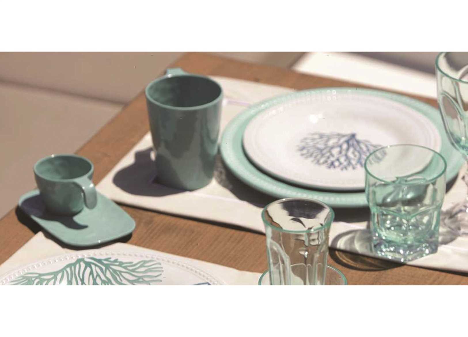 Piatto da dessert con decoro Harmony Mare in confezione da 6 pezzi. In Melamina garantita 100% per uso alimentare. Lavabile in lavastoviglie, infrangibile e anti-macchia.