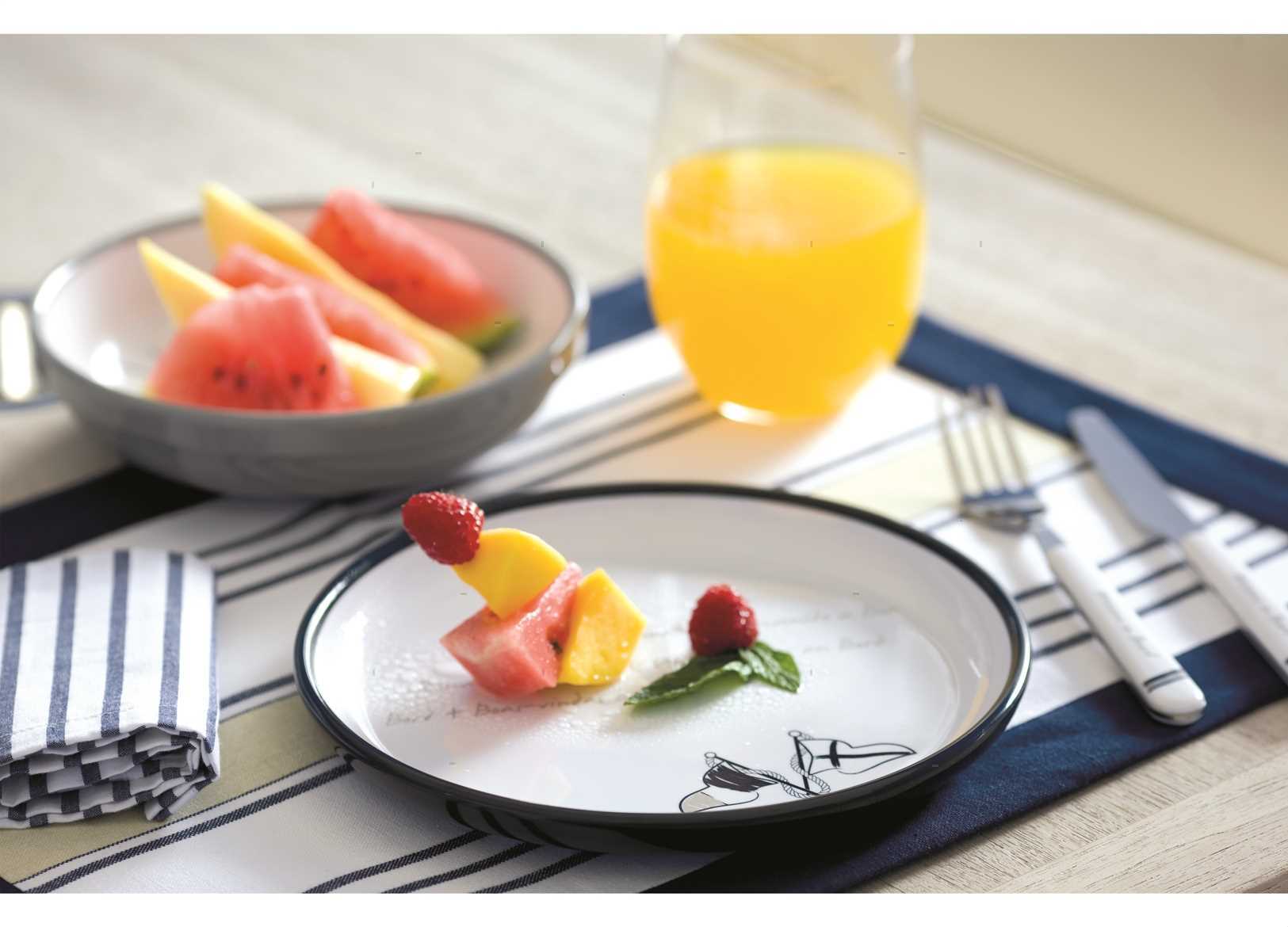 Piatto da dessert con decoro Welcome On Board e base antiscivolo in confezione da 6 pezzi. In Melamina garantita 100% per uso alimentare. Lavabile in lavastoviglie, infrangibile e anti-macchia.