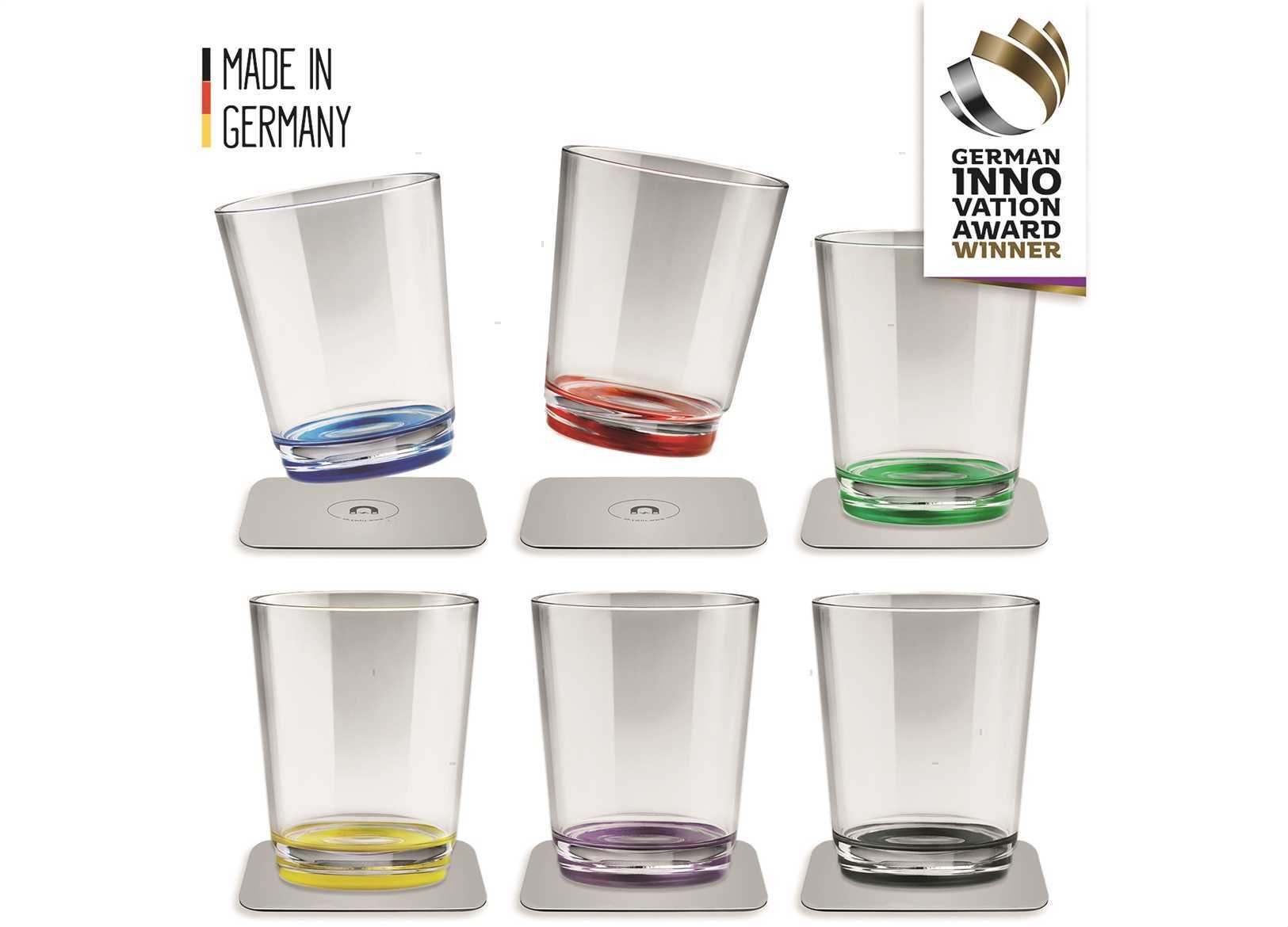 Eleganti bicchieri Silwy con pratici magneti integrati sul fondo che ne rendono sicuro l’appoggio anche quando il mare è mosso. Realizzati in plastica alimentare di alta qualità, testata e certificata, infrangibile e completamente trasparente. Rapporto di tenuta perfetto tra sottobicchiere e bicchiere. I sottobicchieri metallici in nano-gel sono rimovibili, durevoli, non lasciano residui e aderiscono a tutte le superfici. Forniti in set da 6 bicchieri, compresi di sottobicchieri in nano-gel metallizzati.