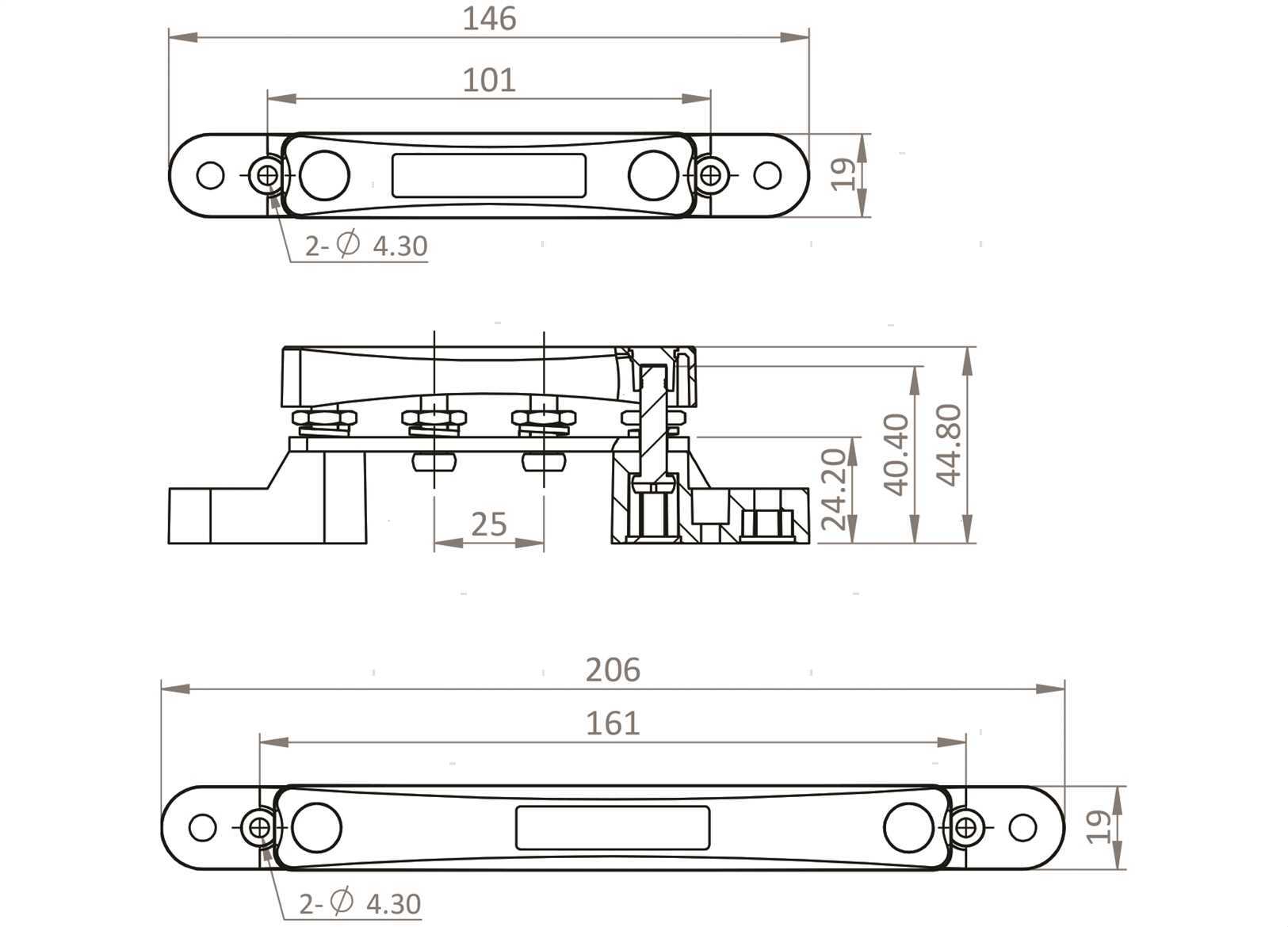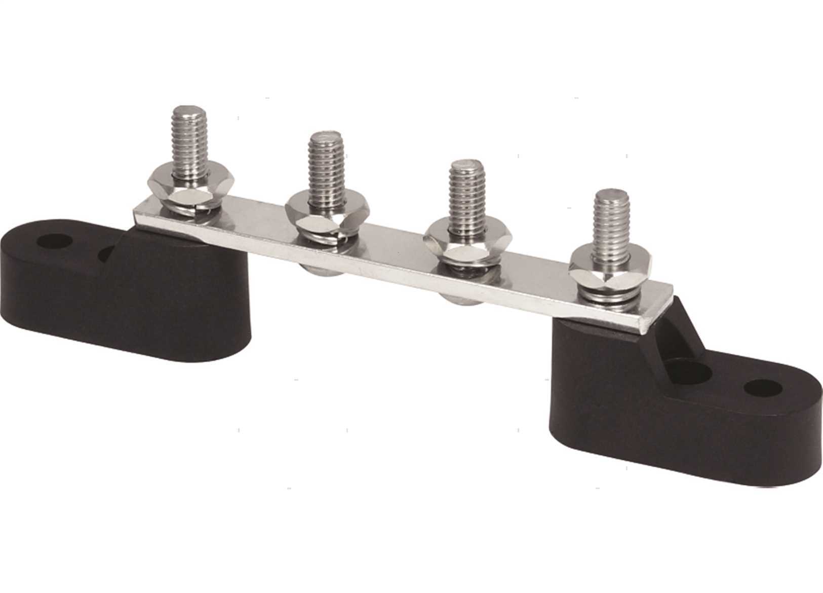Barra di connessione in Ottone cromato con base isolata a ponte ideale per facilitare le connessioni. Completa di coperchio di protezione. Perni filettati M6.