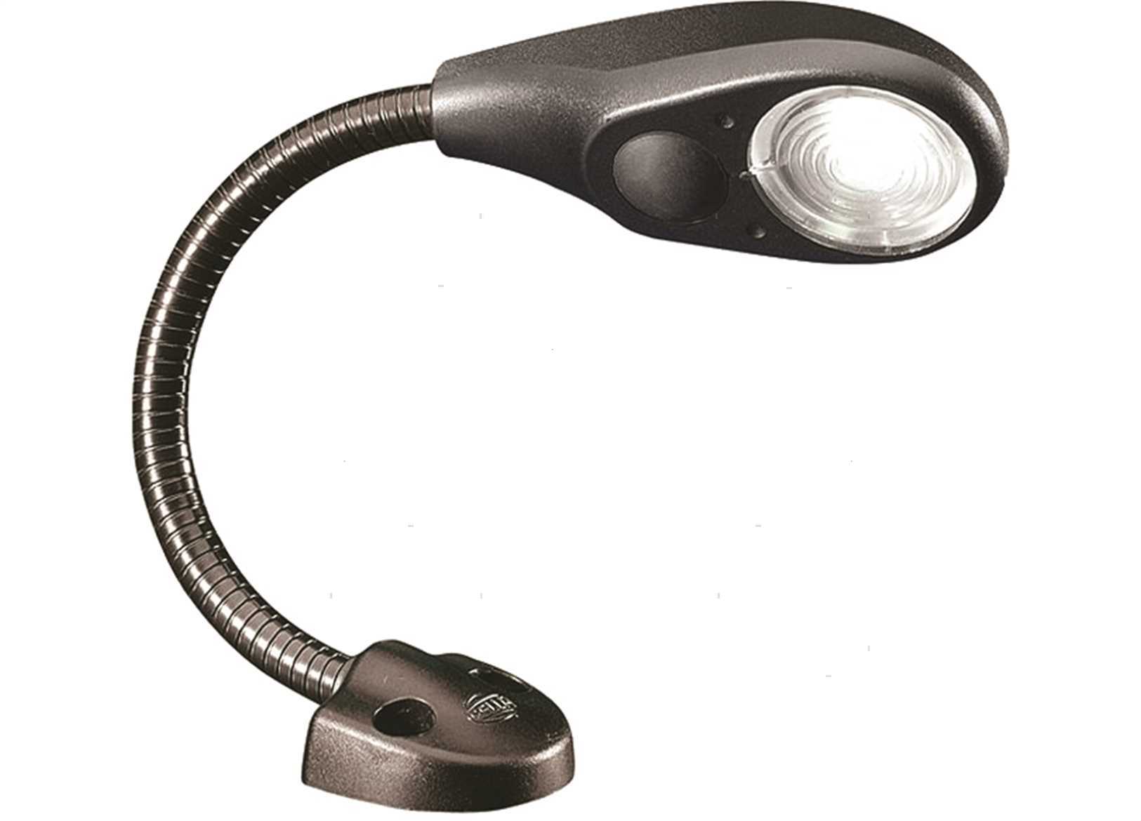 Luce da carteggio e lettura LED con corpo in polimero antiurto resistente UV e frusta in Acciaio Brunito. Montaggio con base a superficie oppure a parete. Alimentazione multivolt 9-31V con 2W di consumo a luce bianca naturale 4000 K°. Completa con 12 cm di cavo marino.