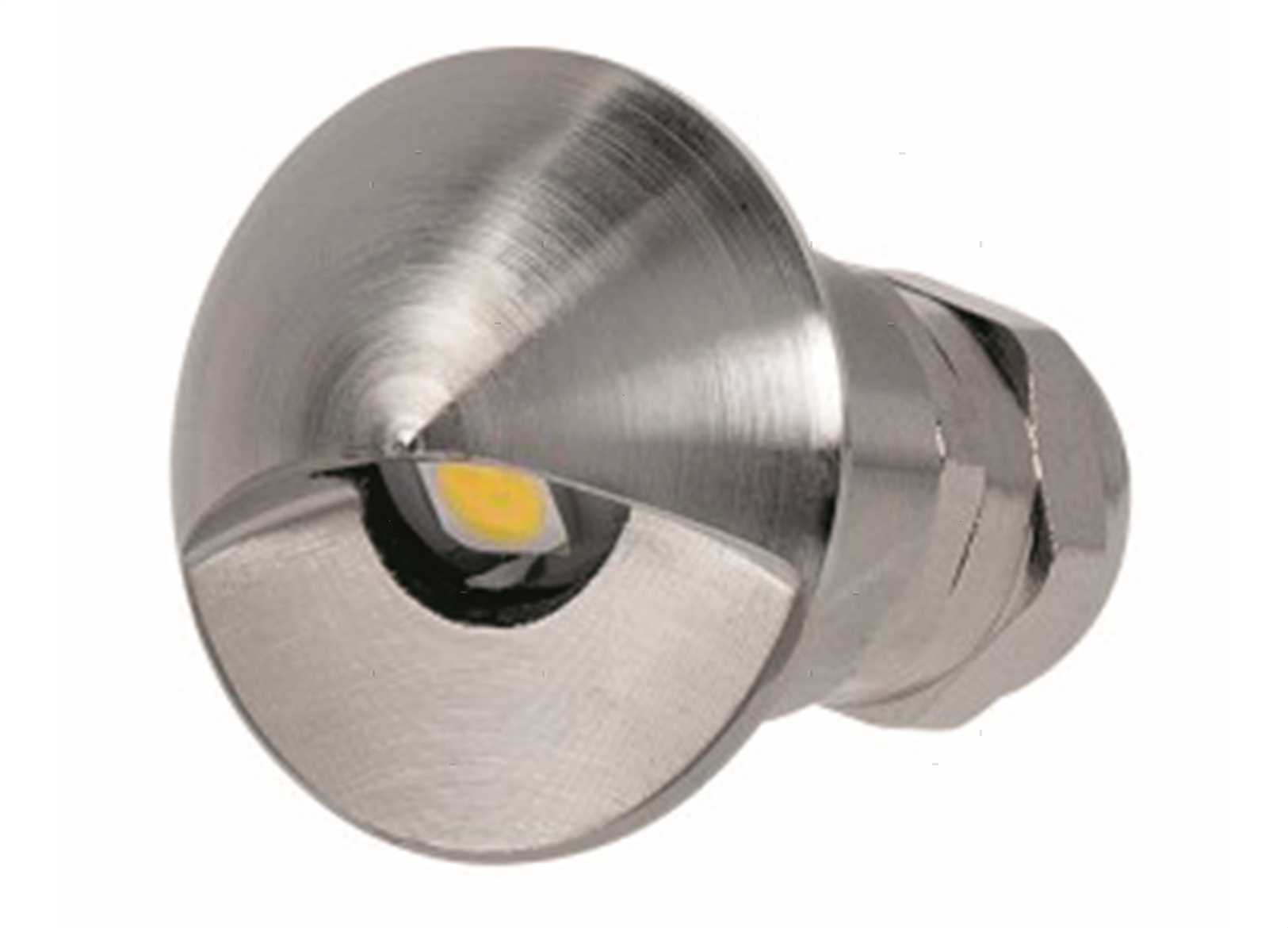 Luce di cortesia LED 12V in Acciaio Inox con montaggio a incasso.?Robusta e impermeabile IP67, ideale per battute e gradini.?Consumo ridotto 0,8W. Luce bianca fredda 6000 K°.?Completa di cablaggio stagno con fusibile.